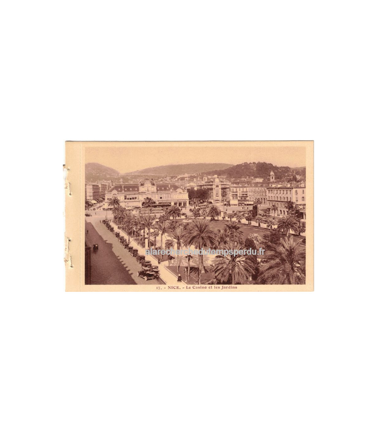 Carte postale de Nice, le Casino et les Jardins N°17 - Collection "Nice" des Editions A la Riviera, 20 vues artistiques, - Faisait partie d'un carnet de cartes postales avec dentelures pour être détachées et expédiées.