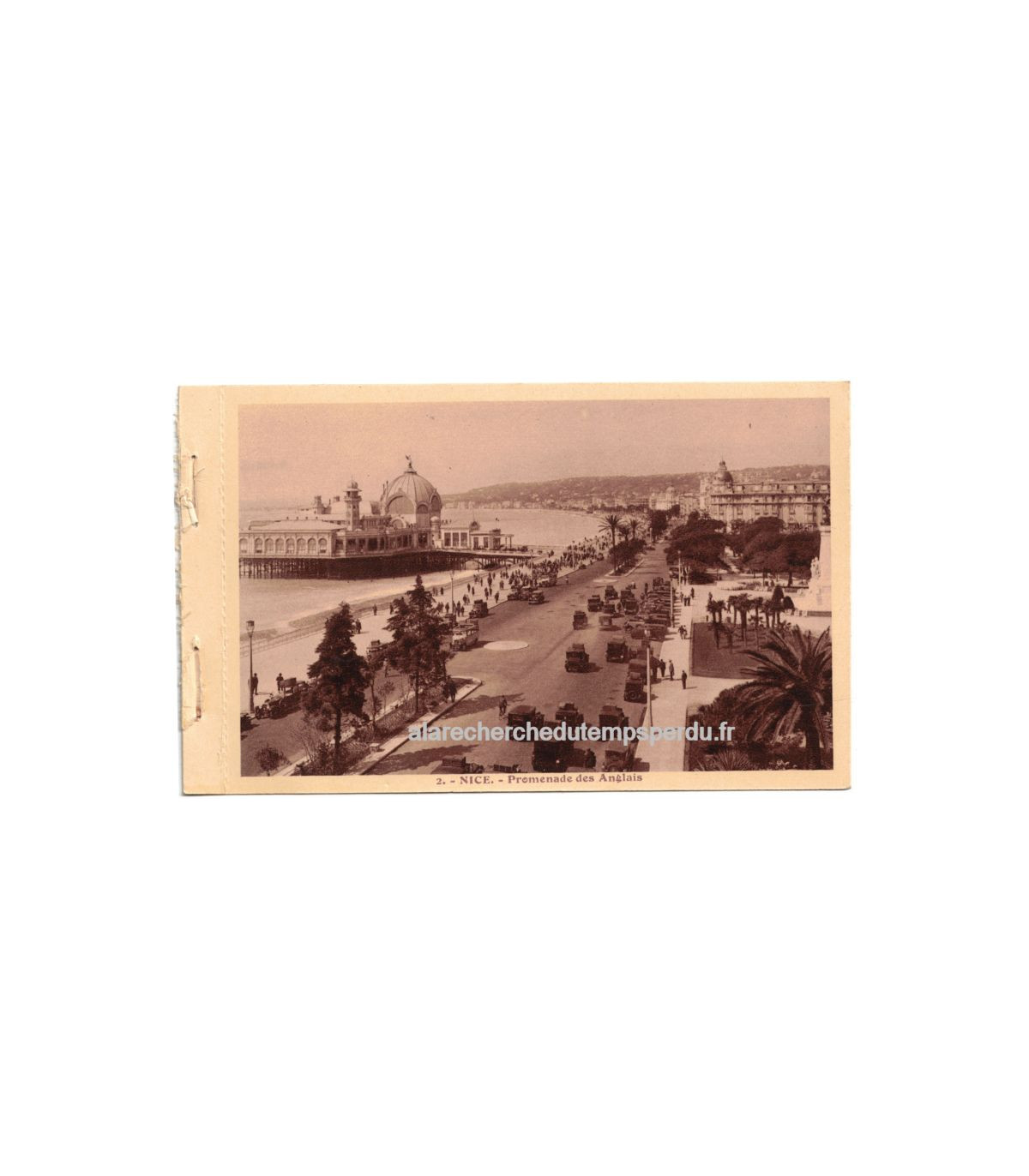 Carte postale de Nice, Promenade des Anglais N°2 - Collection "Nice" des Editions A la Riviera, 20 vues artistiques, - Faisait partie d'un carnet de cartes postales avec dentelures pour être détachées et expédiées.