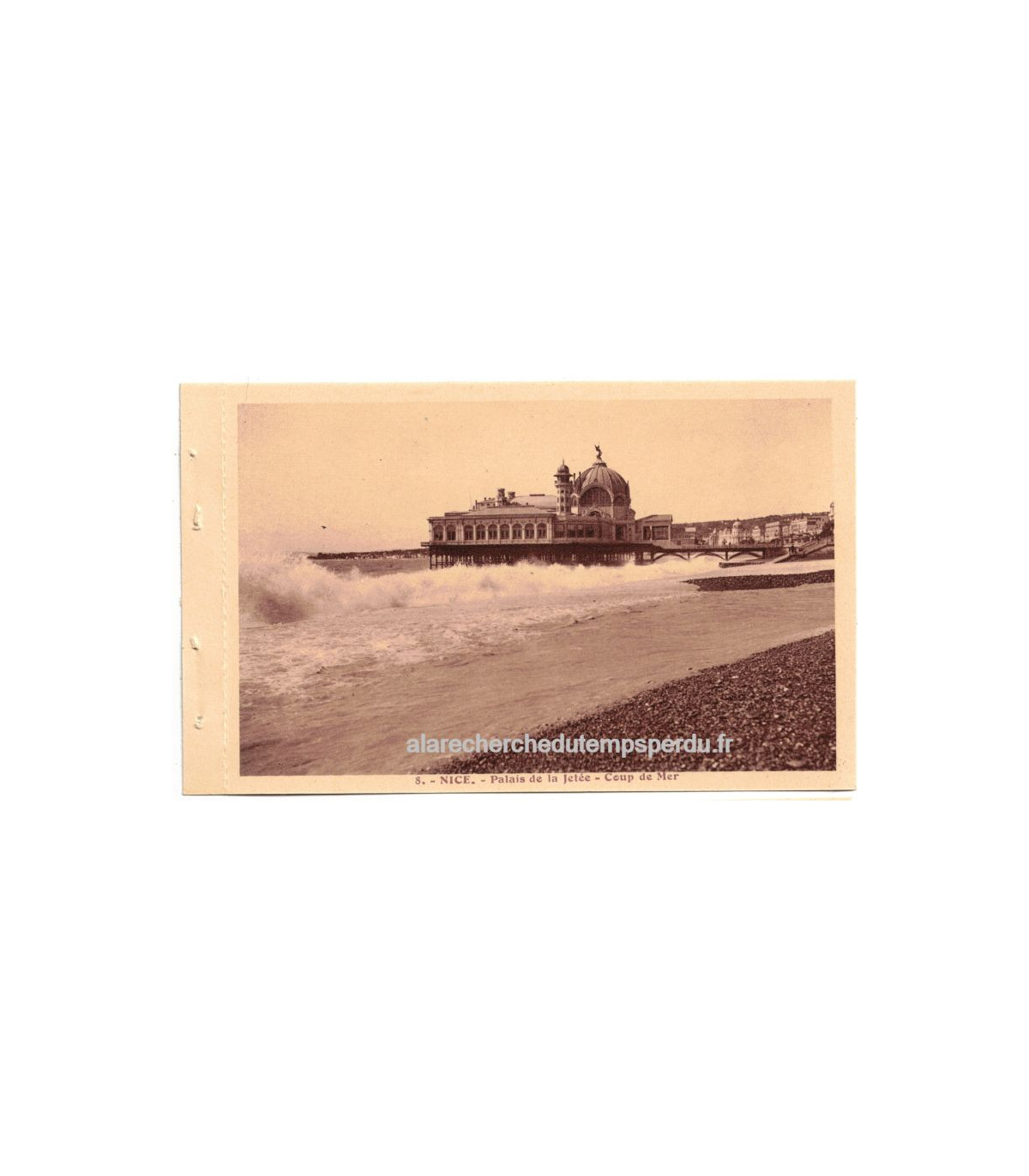Carte postale de Nice, Palais de la Jetée, Coup de Mer, N°8 - Collection "Nice" des Editions A la Riviera, 20 vues artistiques, - Faisait partie d'un carnet de cartes postales avec dentelures pour être détachées et expédiées.