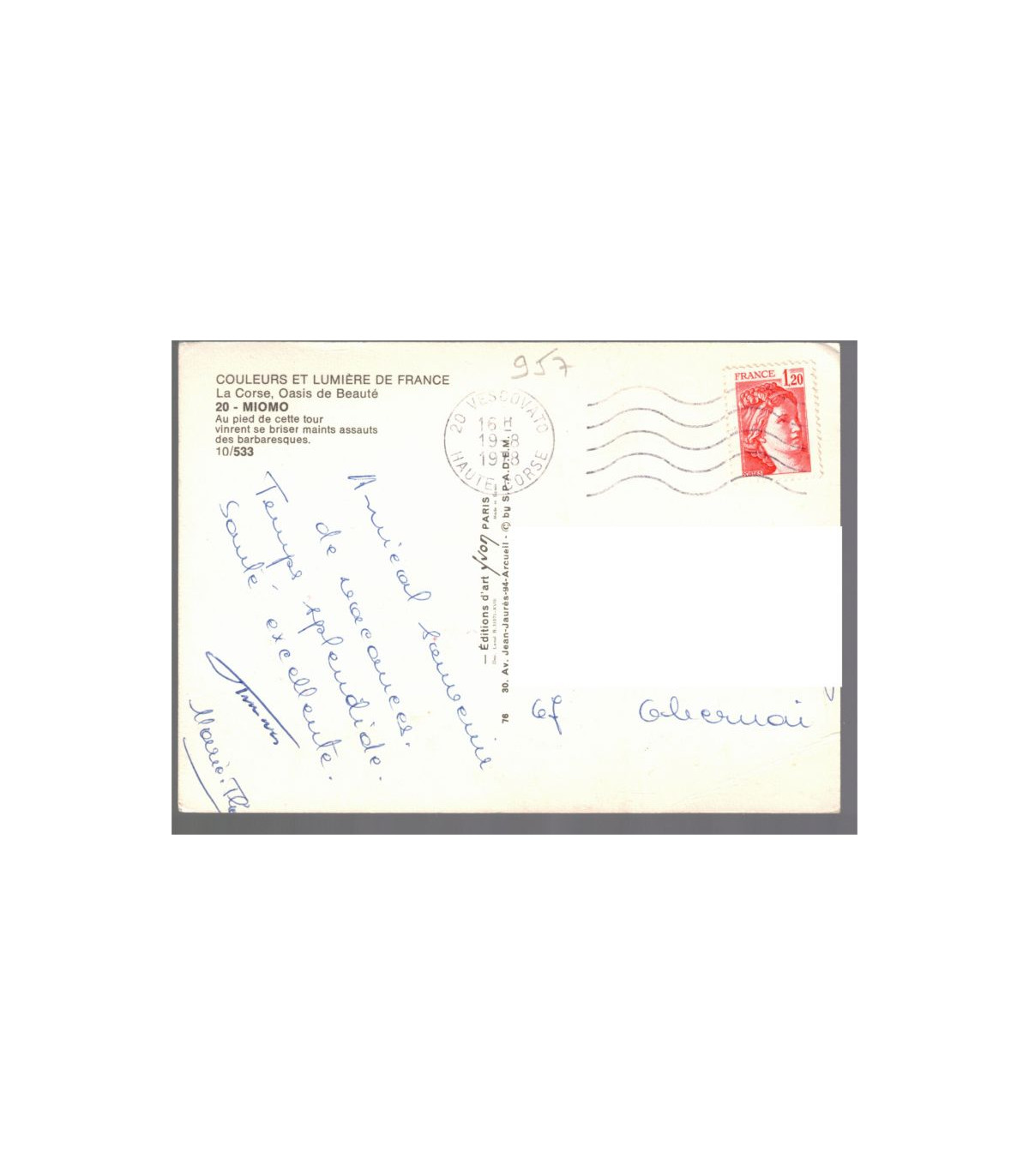 éditions d'art Yvon Paris - #carte postale Miomo, #tour de Miomo, #Miomo Corse 1978, #cartes postales Corse, #timbre-poste Sabine de Gandon, #timbre-poste 1978, #philatélie, #cartes postales anciennes,