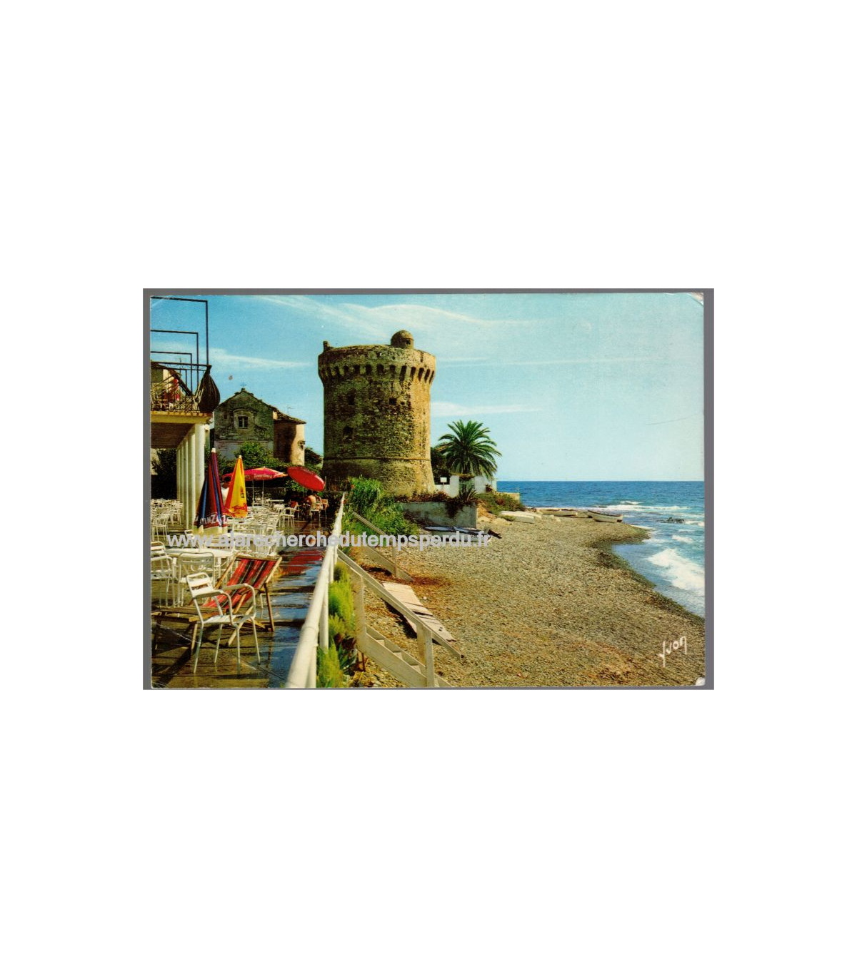 Carte postale Miomo, au pied de cette tour vinrent se briser maints assauts des barbaresques - La Corse, oasis de beauté 10/553 - Collection Couleurs et lumière de France -