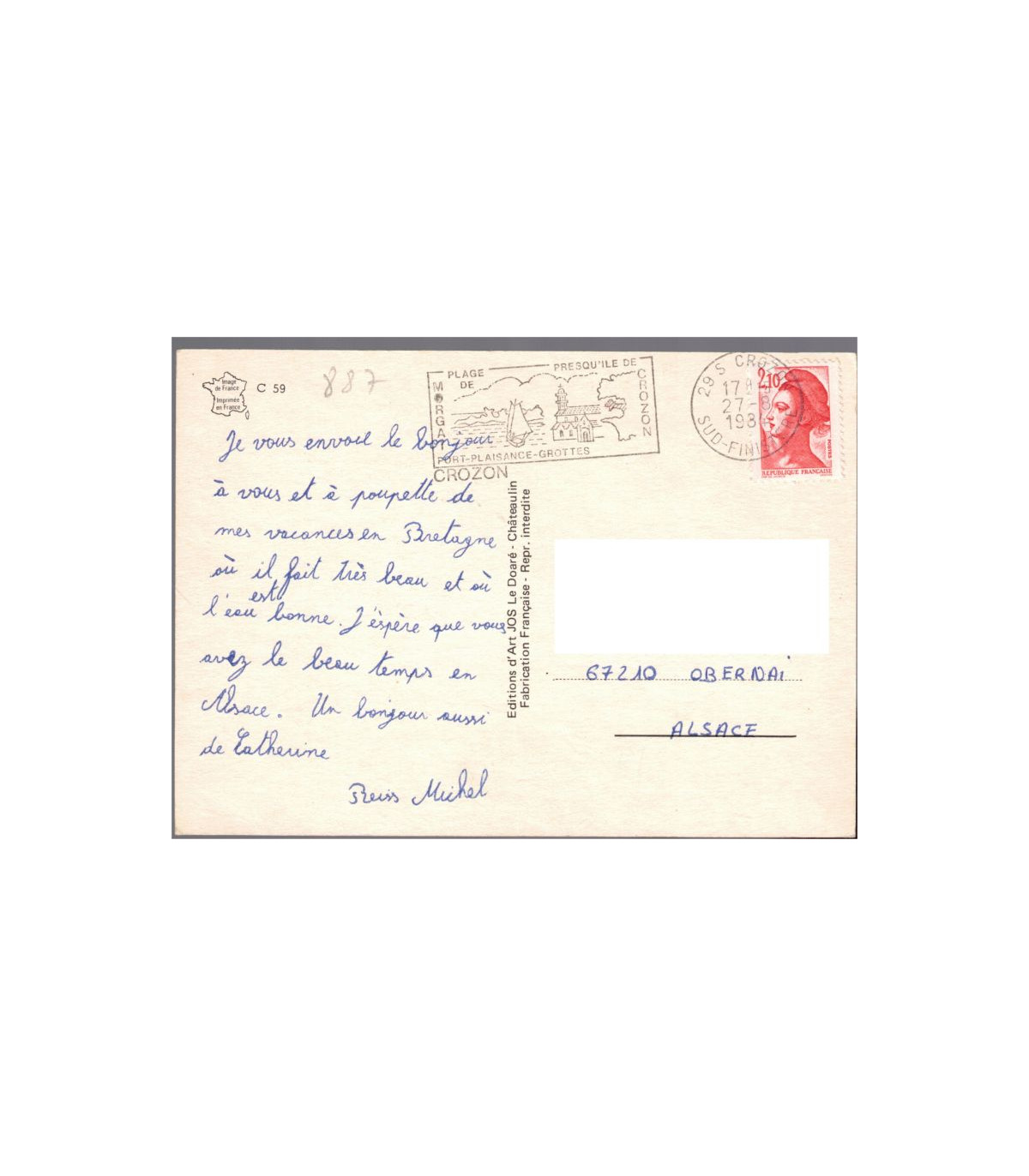 Carte postale Images de Crozon-Morgat, et timbre Liberté de Gandon 2,10 frs - département 29 Finistère - Collection Images de France C 59 -
