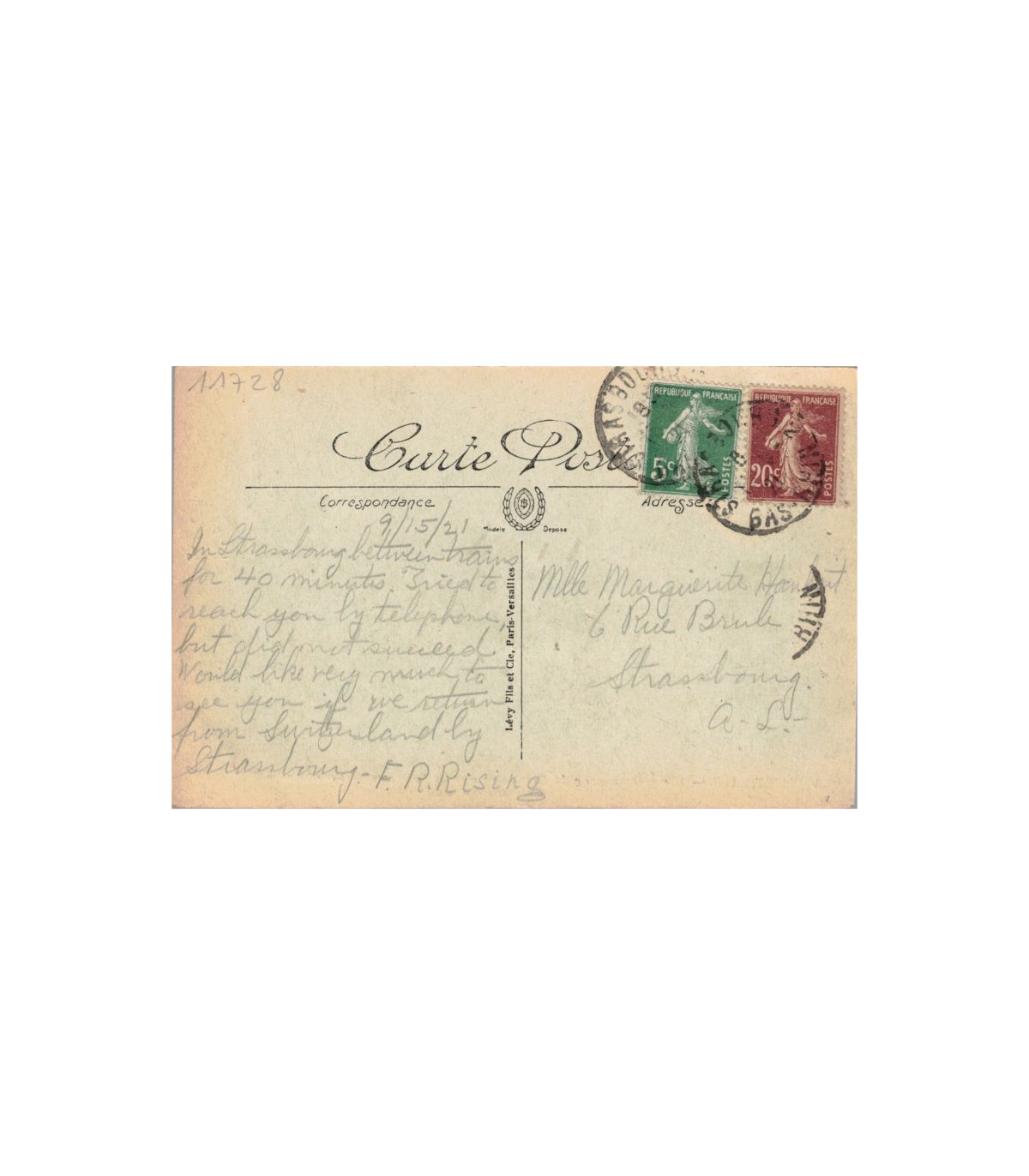 Carte ayant circulée jusqu'à Strasbourg, 6 rue Brûlée. Datée au crayon de 1921.