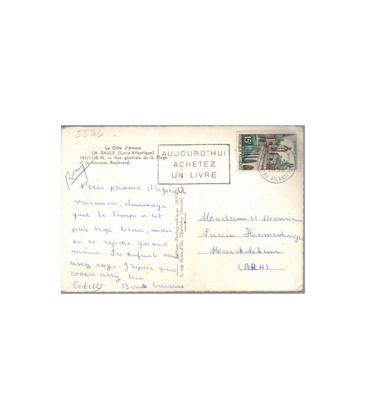 #département 44, #cartes postales anciennes, #carte postale département 44, #carte postale Loire-Atlantique, #Côte d'Armor, #La Baule 1950, #plage la Baule 1950, #timbre Le Quesnoy, #Le Quesnoy 15F, #philatélie, .