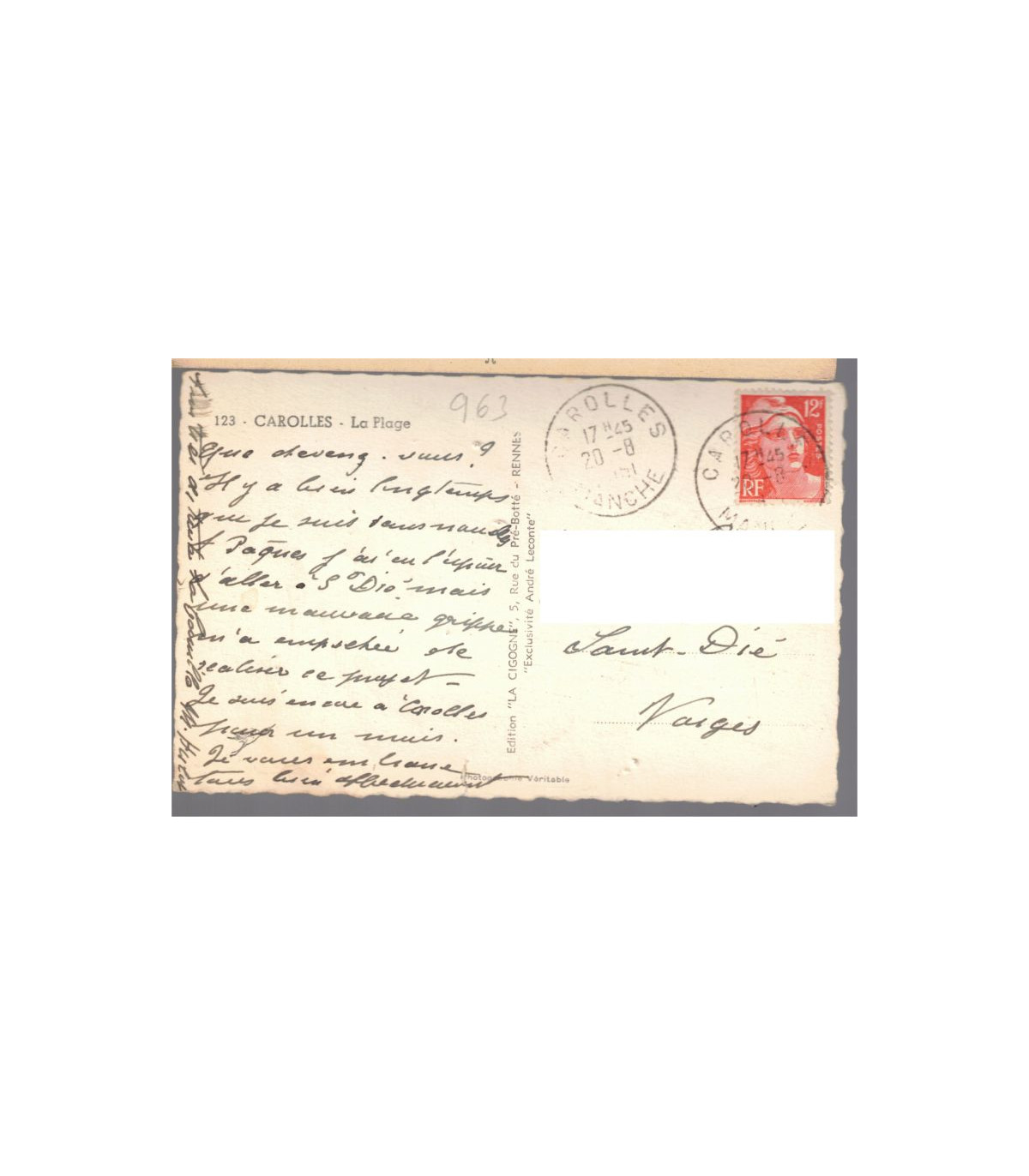 #Carolles Manche, #plage de Carolles, #plage de Carolle en 1950, #timbre-poste Marianne de Gandon, #Marianne de Gandon 12 francs, #timbre bonnet phrygien 1951, #villages Manche, #cartes postales Manche, #département Manche, #cartes postales département 50, #cartes postales Normandie, #cartes postales anciennes,