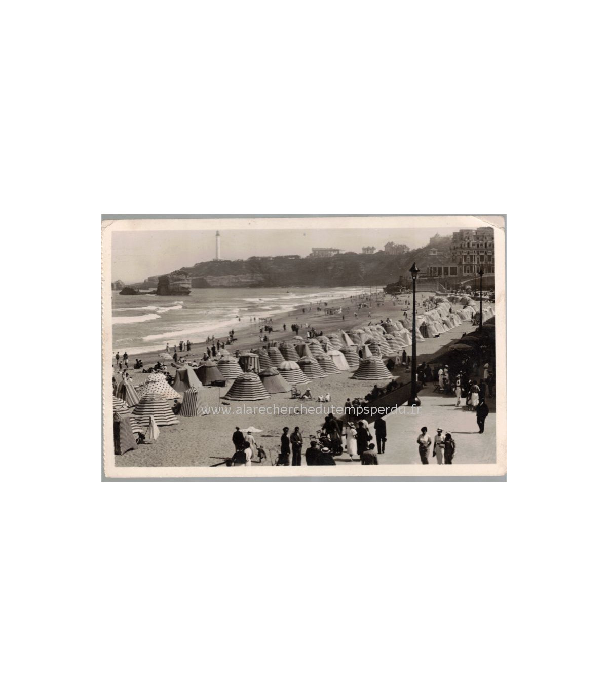 Biarritz, la grande plage, - carte postale département 64 Pyrénées-Atlantiques, timbre Marianne 12fr 1949, philatélie,
