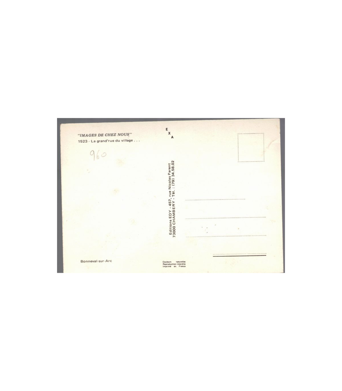 éditions Edy rue Nicolas Parent Chambéry. #carte postale Bonneval-sur-Arc, #église Bonneval-sur-Arc, #grand'rue Bonneval-sur-Arc, #villages de Savoie, #carte postale département 73, #cartes postales Savoie,