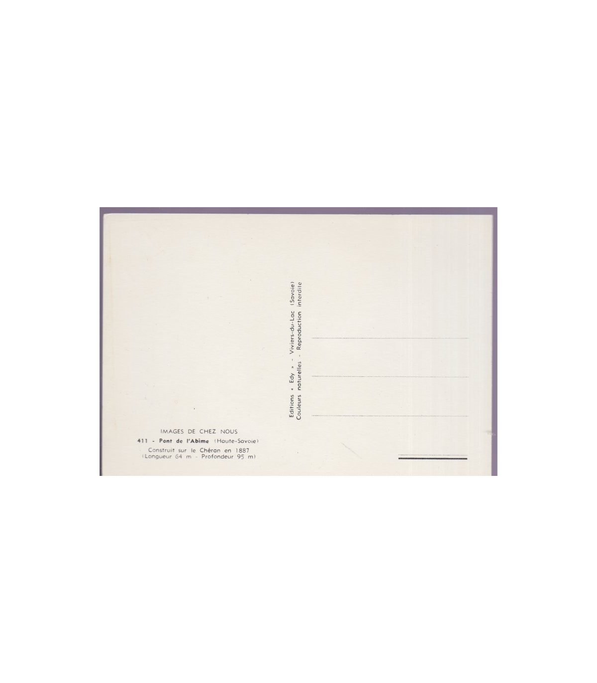 Carte postale Pont de l'Abîme, construit sur le Chéron en 1887 - Longueur 64 m, profondeur 95 m. Collection Images de chez nous - N°411. département de Haute-Savoie 74.