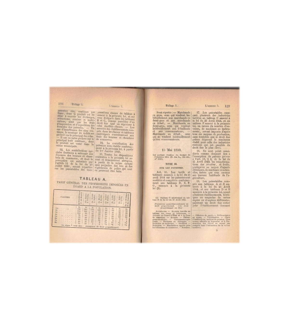 Prud'hommes - Marques de fabrique - Patentes - Ateliers et manufactures insalubres - Nomenclature des Etablissements insalubres, dangereux ou incommodes -