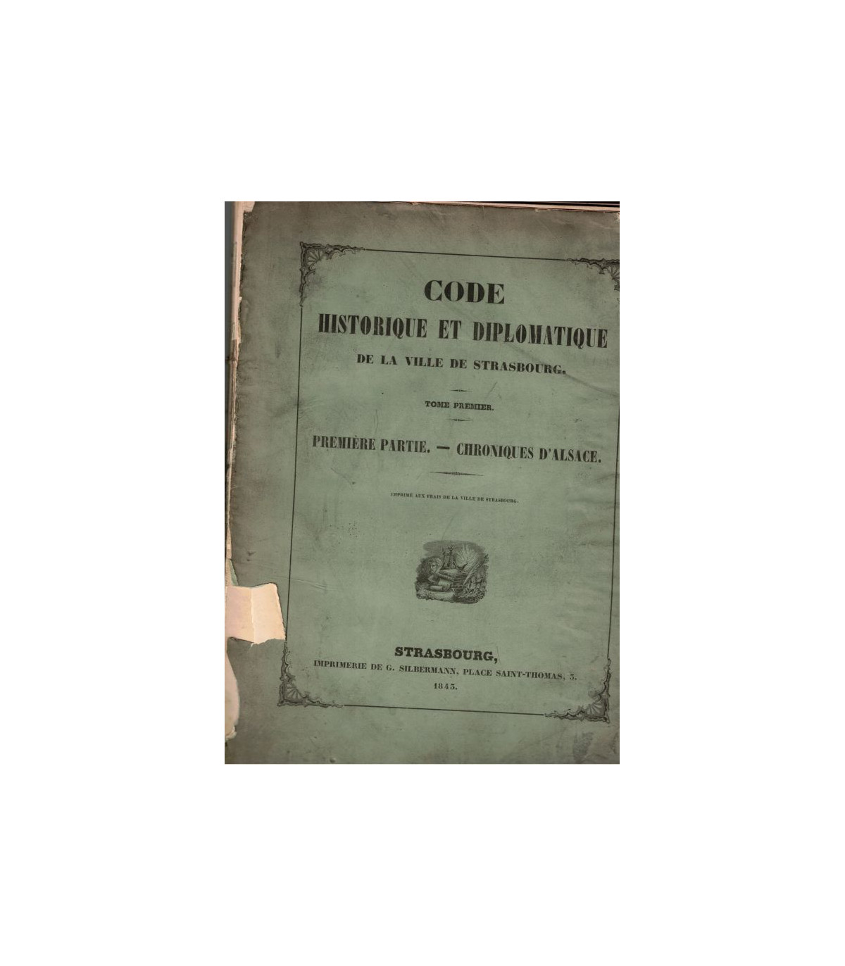 Chroniques d'Alsace, Code historique et diplomatique de la ville de Strasbourg, 1843 -, histoire Alsace,
