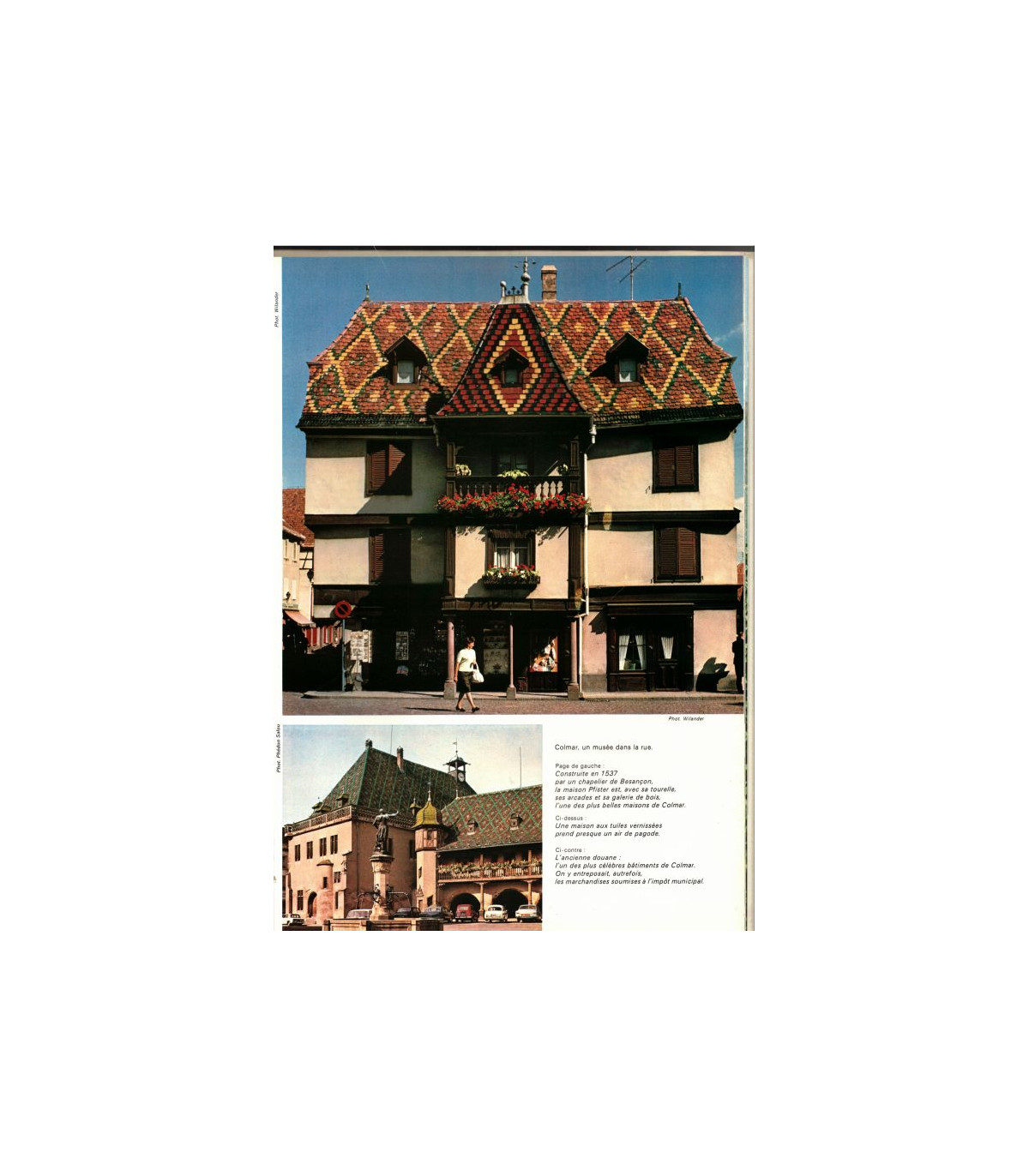 L'Alsace, Henri Nonn - Découvrir la France, Larousse - I. Une province française dans l'espace rhénan : l'Alsace, terre frontière - le Rhin, une ère nouvelle - l'Alsacien, le dialecte en question, fidèle et frondeur - II. L'avenant visage de l'Alsace rurale : dans le fossé du Rhin : la plaine aux cinq terroirs, vivants villages, les bastions agricoles, aux vins d'Alsace - Le rempart des belvédères : les vallées d'où la vie s'en va - riche nature aux bords de l'Alsace - Toute la vitalité d'un peuple, un art populaire, les fêtes joviales - III. Une civilisation urbaine de qualité : la toile de Pénélope : la longue tradition de l'industrie, une concentration modérée - La vitalité des petites villes : un tissu dru, à la mesure de l'homme, les trésors de la Décapole - Un tiercé d'atouts, la plus alsacienne des grandes villes, une capitale technologique, la ville européenne - IV. L'Alsace à l'heure de l'aménagement : le temps de la rénovation : l'Alsace culture son jardin, des emplois disputés, arrimer l'Alsace - Les séductions de l'Alsace, par les portes de France, accueillante montagne. éditions Librairie Larousse, 1973. #tourisme, #tourisme Alsace, #Strasbourg, #le Rhin, #Alsace en 1970, #villages alsaciens, #livre grand format, #découvrir la France