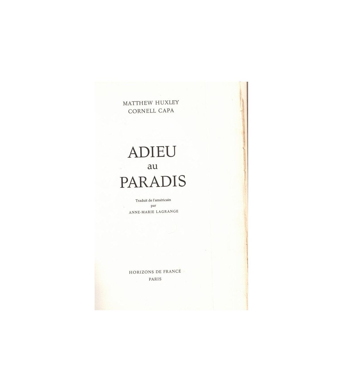 Adieu au paradis, textes de Matthew Huxley, photographies de Cornell Capa, 1965 - Farewell to Eden, traduit de l'américain - Collection Hommes et Civilisations -