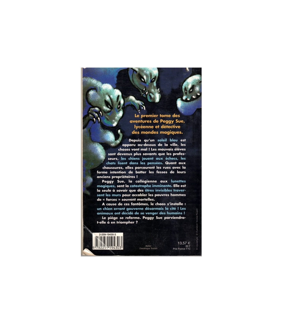 Peggy Sue et les fantômes, le jour du chien bleu, par Serge Brussolo - le premier tome des aventures de Peggy Sue, lycéenne et détectives des mondes magiques. éditions Plon, 2001. #mondes magiques, #frayeur jeunesse, #frissons jeunesse, #mystères jeunesse, #littérature jeunesse,