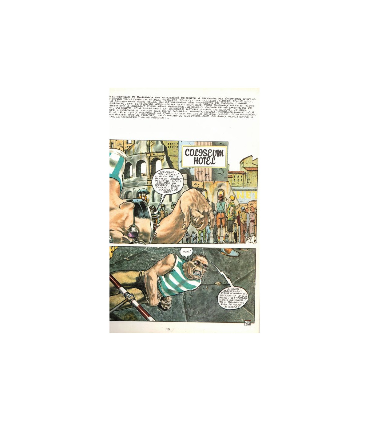 "Rome, 30ème niveau, 19h. Ranxerox a rendez-vous au bar des clones avec Lubna. "L'voilà! - Pas mal! - Magne-toi, Rank! Trouve m'en, j'me sens mal. - Attends-moi ici ! -Le seul à pouvoir me fournir à cette heure, c'est Damien... 7...25.."