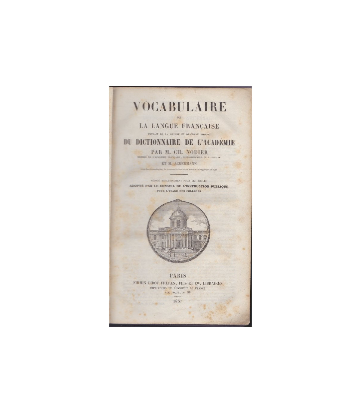 Vocabulaire de la langue française - Extrait de la sixième et dernière édition du dictionnaire de l'Académie, par Ch. Nodier et Ackermann -