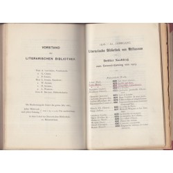 Catalogue de la Bibliothèque littéraire de Mulhouse 1913, par la Société de la Bibliothèque littéraire de Mulhouse, 59e année - Classement alphabétique par titres d'ouvrages - Ouvrages pour la jeunesse classés par noms d'auteurs français, allemands et anglais - Catalogue par noms d'auteurs : auteurs français, auteurs allemands, auteurs anglais, auteurs italiens. - Avec, en fin d'ouvrage, Premier supplément au catalogue général 1914 - Zweiter Nachtrag zum General-Katalog, 1915, Lieterarische Bibliothek von Mülhausen - Dritte Nachtrag zum General-Katalog 1916 - Vierter Nachtrag zum General-Katalog 1917 - Fünfter Nachtrag zum General-Katalog 1918 - Sixième supplément au catalogue générale 194, 64e année - Septième supplément au catalogue général 1920 - Huitième supplément au catalogue général, 1921 66e année.