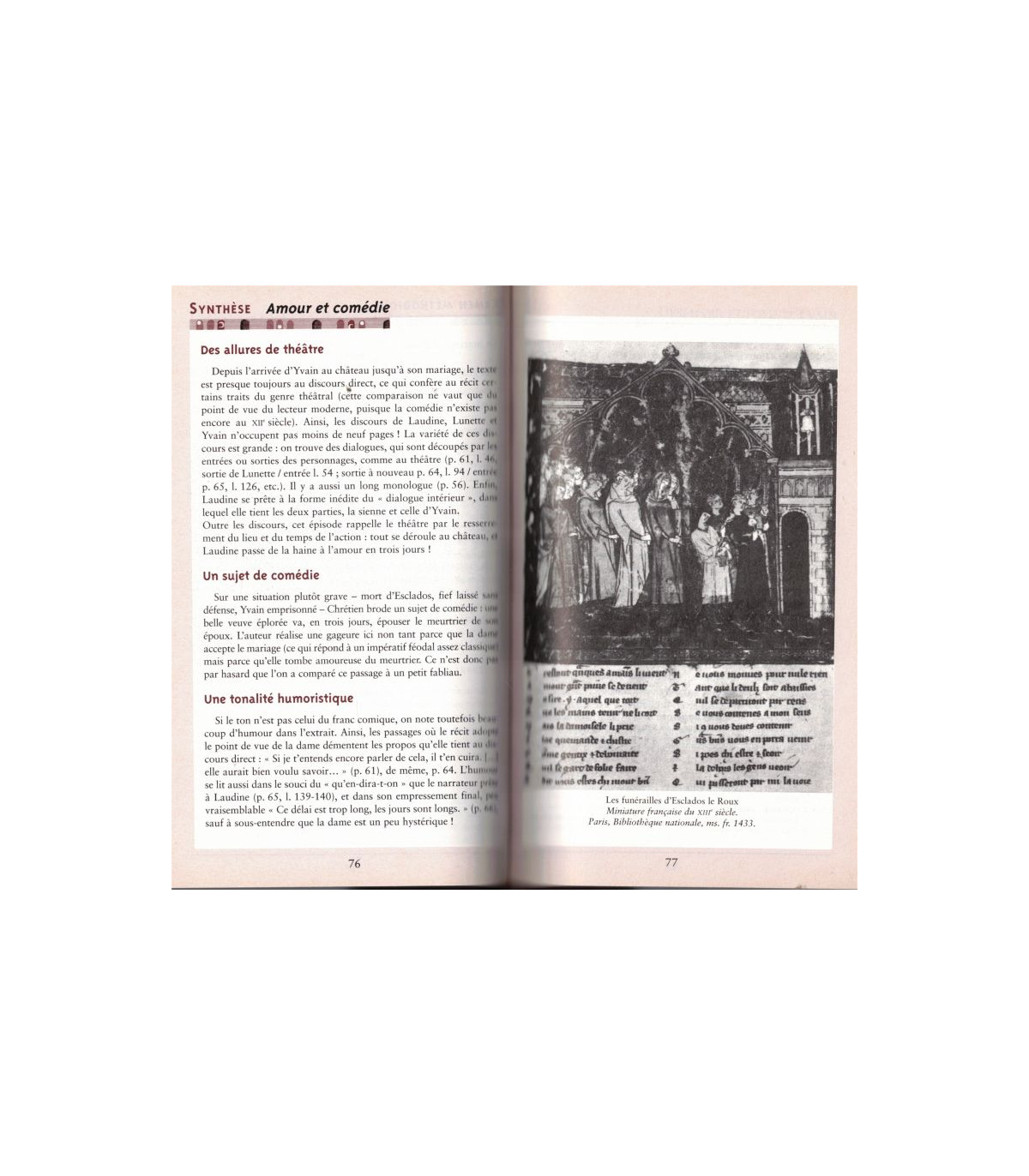 Comment lire l'ouvre : action et personnages: résumé de l'action, schéma narratif, schéma actantiel, les personnages ; études d'ensemble: l'amour et la prouesse, le merveilleux dans Yvain, l'univers médiéval dans Yvain ; destin de l'œuvre, la postérité d'Yvain dans la littérature médiévale, jugements et critiques ; outils de lecture, l'ancien français du XIIe siècle, remarques sur l'étymologie, carte du monde arthurien, vocabulaire du Moyen Age -