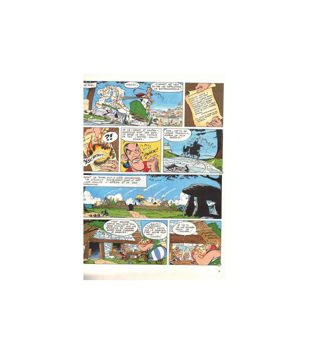 "Dans le calme de la profonde forêt gauloise, tout semble indiquer qu'il est l'heure de se mettre à table... Mais certains de ses habitants ont perdu de leur appétit. - Groin groin groïïïn! -Grrr ononon! Groïn Groïn! -N. de l'A.: pour une meilleure compréhension du dialogue et en nous excusant auprès des puristes, nous avons fait une version doublée : - Es-tu vraiment certain que nous n'allons pas rencontrer un de ces fous du village voisin ? - Je t'ai dit que tu ne risquais rien avec moi. Pourquoi as-tu peur ? - Parce qu'ils ont avalé, croqué, bâfré, englouti tous ceux de ma harde et que je suis l'unique survivant d'une famille nombreuse, voilà pourquoi ! - Allons, reprends du poil de l'homme! Tu te conduis comme un jeune marcassin qui aurait encore des dents de laie. - Blague dans le groin! Mon système est infaillible et je suis prêt à parier avec toi que nous ne serons jamais au menu des Gaulois. - Et si tu perds ton pari, qui est-ce qui le gagne ? - Les fous ! - Les déjeuners !"
