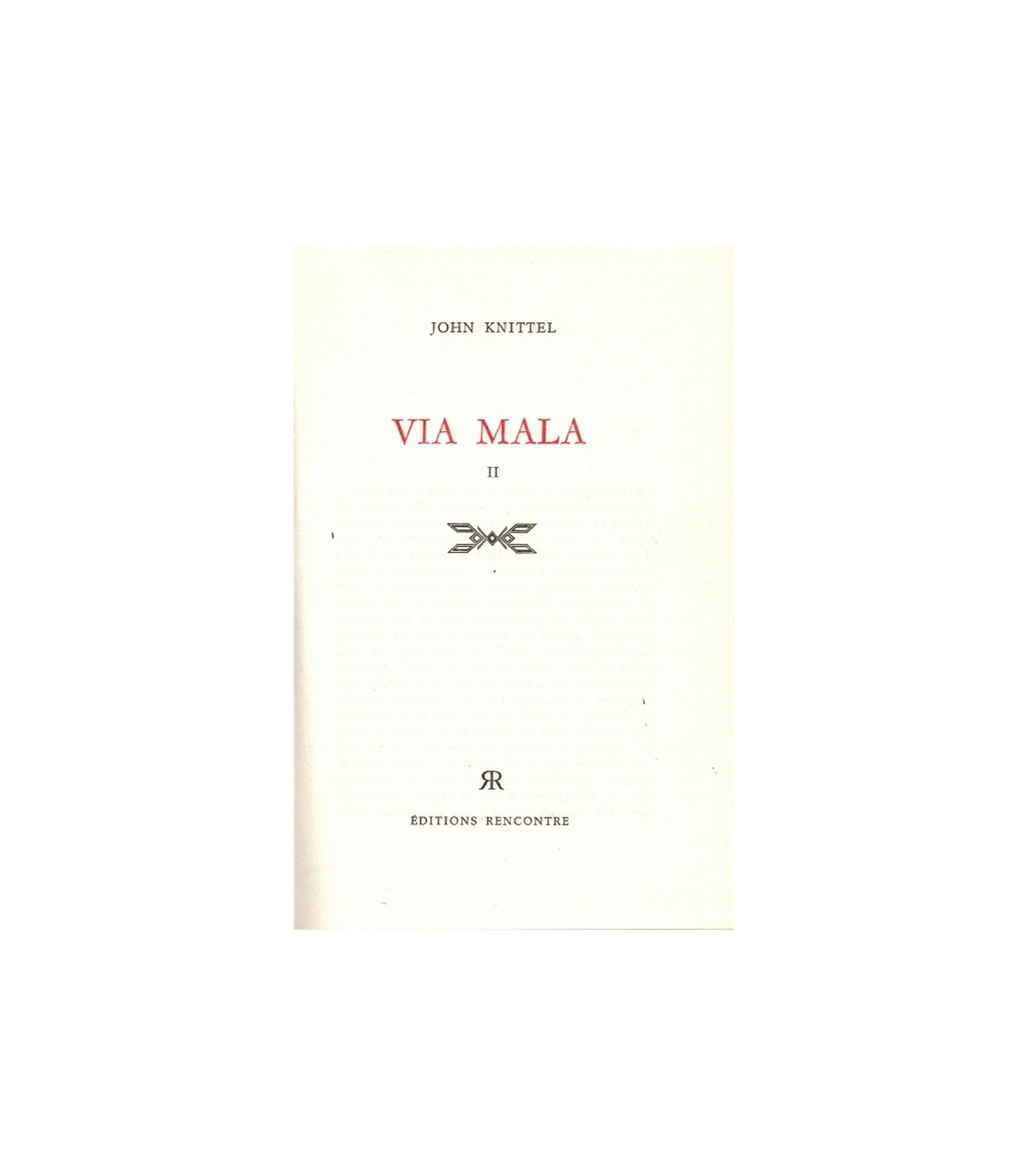 Via Mala, tome 2, par John Knittel - belle reliure des Editions Rencontre, Lausanne.