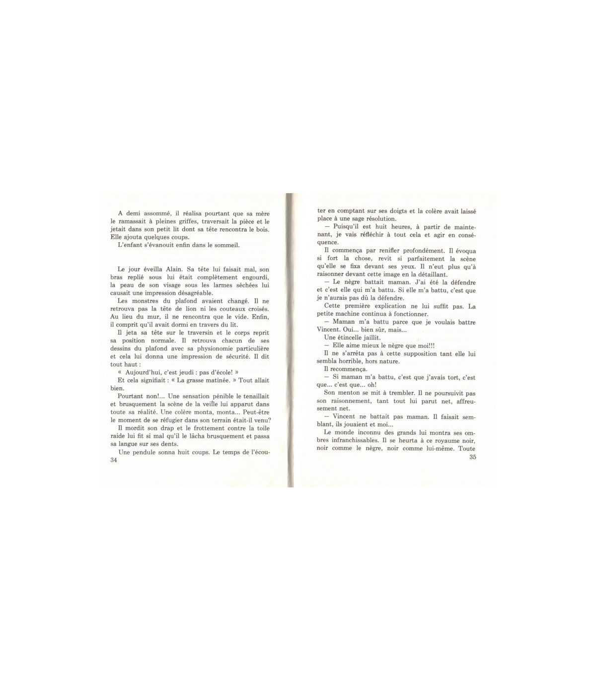 "L'enfant comprit qu'il ne pourrait pas s'endormir. Las de rechercher vainement la bonne position, il enfonça son coude dans l'oreiller, cala sa joue dans la paume de sa main et se résigna à l'examen de minuit.