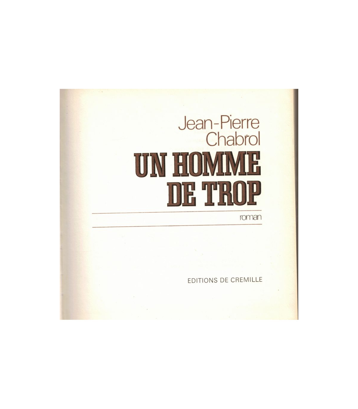 Un homme de trop, Jean-Pierre Chabrol - Collection Les Grands Romans de guerre, des éditions de luxe de Crémille, par François Beauval, Genève, avec belle couverture en simili-cuir estampé doré, sur papier bouffant de luxe, et illustré hors-texte par des photographies -