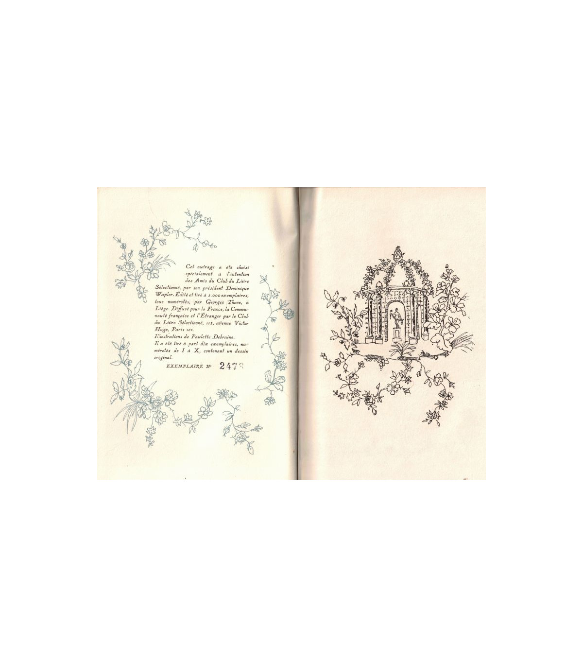 Adolphe, Le Cahier Rouge, Benjamin Constant - Belle édition numérotée pour les Amis du Club du Livre Sélectionné - illustrations de paulette Debraine - Précédé de : Anecdote trouvée dans les papiers d'un inconnu - préface de la seconde édition ou essai sur le caractère et le résultat moral de l'ouvrage - préface de la troisième édition - avis de l'éditeur -