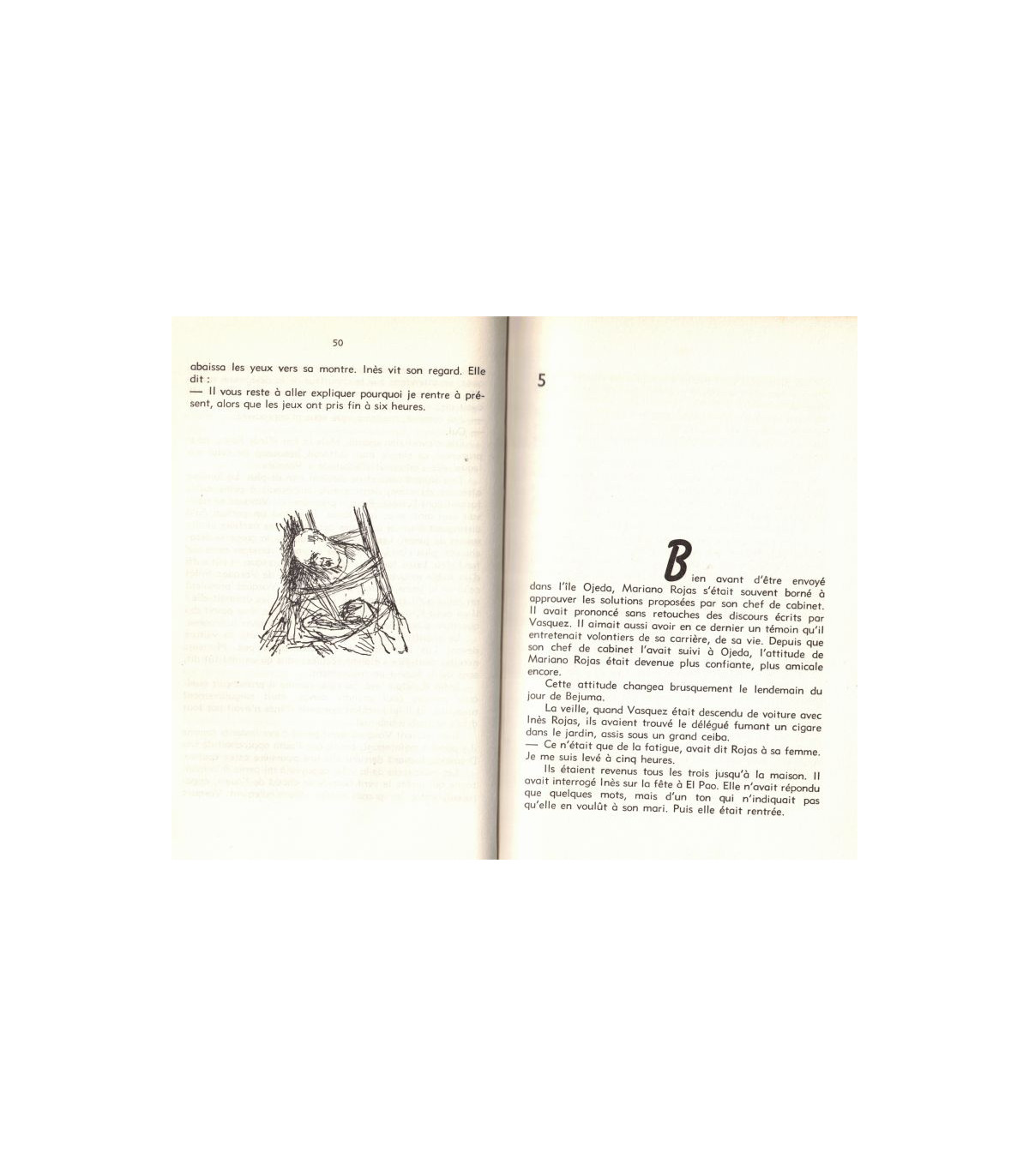 Sans rien dire, Mariano Rojas, délégué du gouvernement vénézuélien dans l'île Ojeda, s'approcha de la fenêtre à la jalousie à demi baissée. Son attention semblait retenu par le bruit d'une auto qui montait vers la villa. Quand ce bruit commença à décroître, le délégué se tourna vers Vasquez, son chef de cabinet. Vasquez avait remarqué l'apparence plus sombre qu'à l'ordinaire - et, en même temps, irritée, de Mariono Rojas.