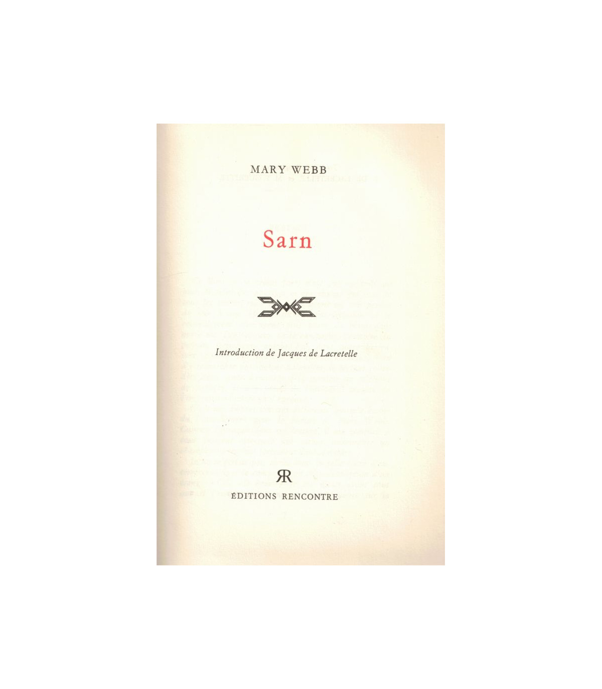Sarn, Mary Webb - roman traduit de l'anglais - introduction de Jacques de Lacretelle - belle reliure des Editions Rencontre -