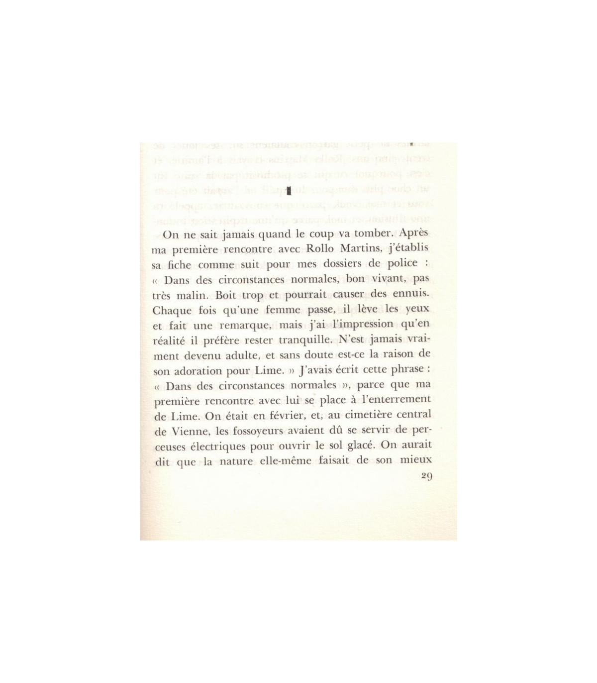 Précédé de vingt pages où Graham Greene répond aux questions de George Adam. Avec des photographies des deux films réalisés par Carol Reed : Le Troisième homme, avec Orson Wells, Alida Valli et Joseph Cotten ; Première Désillusion, avec Michèle Morgan.