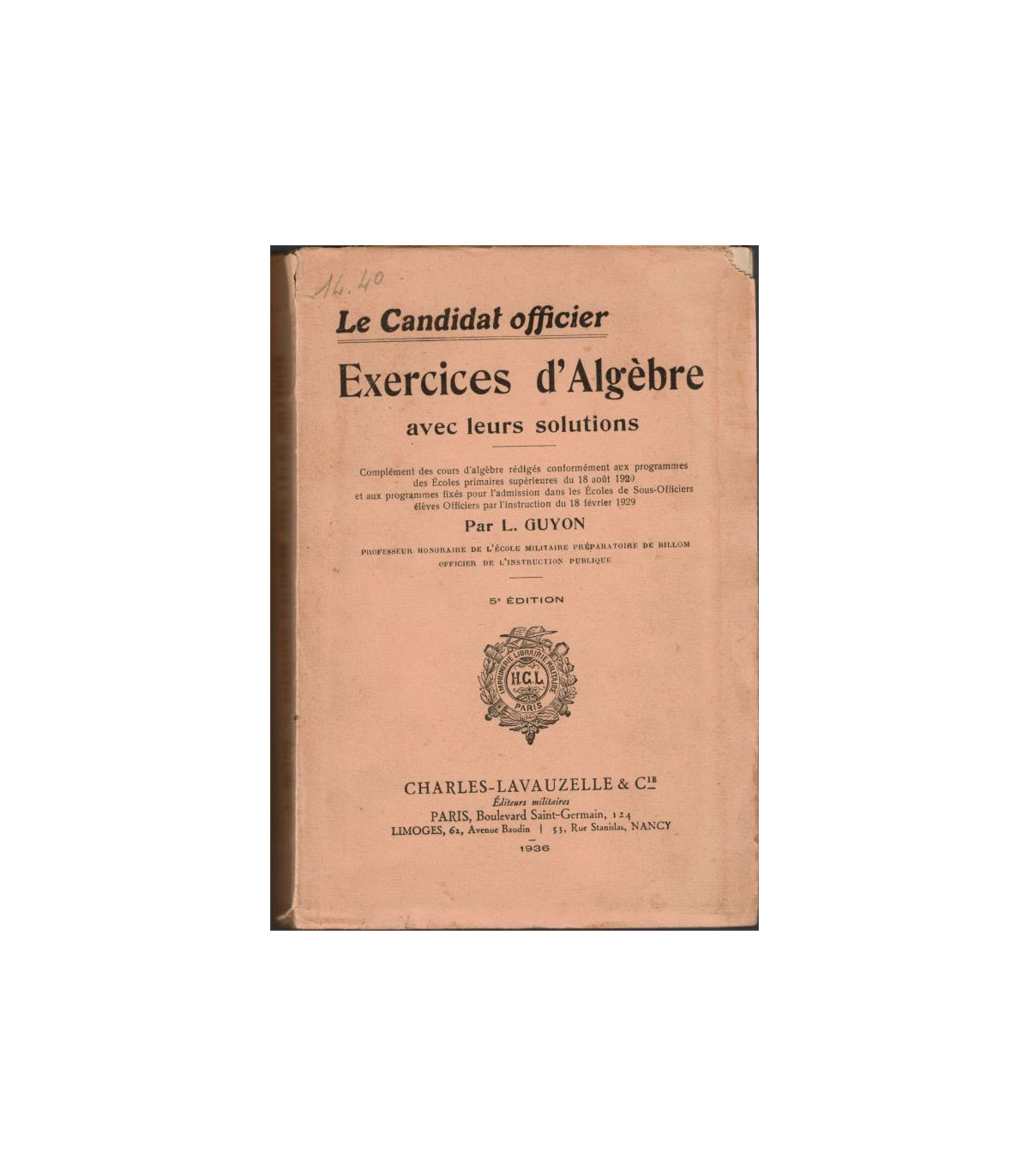 Le candidat officier - Exercices d'algèbre avec leurs solutions, L. Guyon - Complément des cours d'algèbre rédigés conformément aux programmes des Ecoles primaires supérieures du 18 août 1920, et aux programmes fixés par l'admission dans les Ecoles de Sous-Officiers élèves officiers par l'instruction du 18 février 1929.