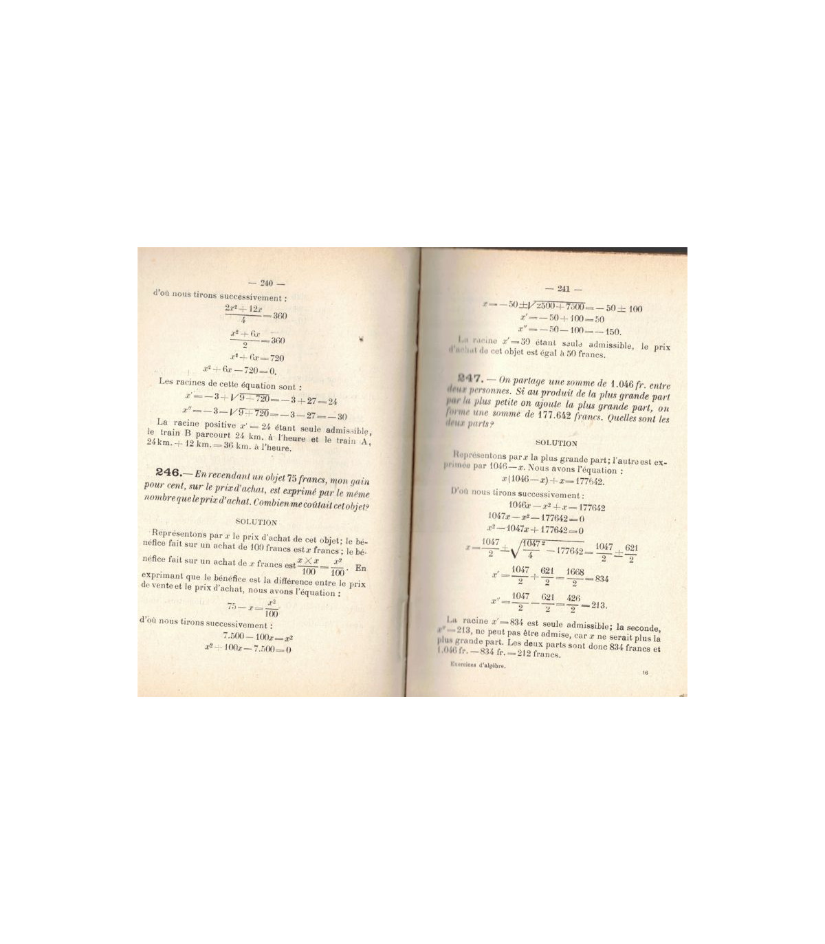 Progressions et logarithmes, applications des logarithmes : progressions arithmétique ; progressions géométriques ; logarithmes ; intérêts composés ; annuités et amortissements ; usage des tables contenant les logarithmes des sinus, cosinus et tangantes -