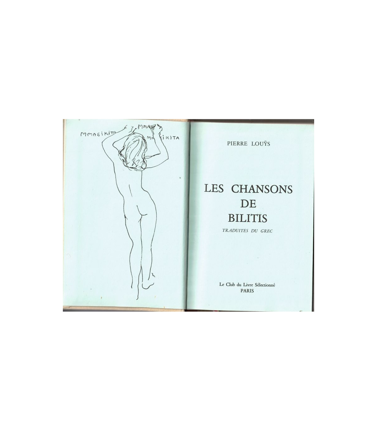 Les chansons de Bilitis, Pierre Louÿs - traduites du grec - Belle édition reliée, avec treize illustrations hors texte. Exemplaire numéroté pour Le Club du Livre Sélectionné -