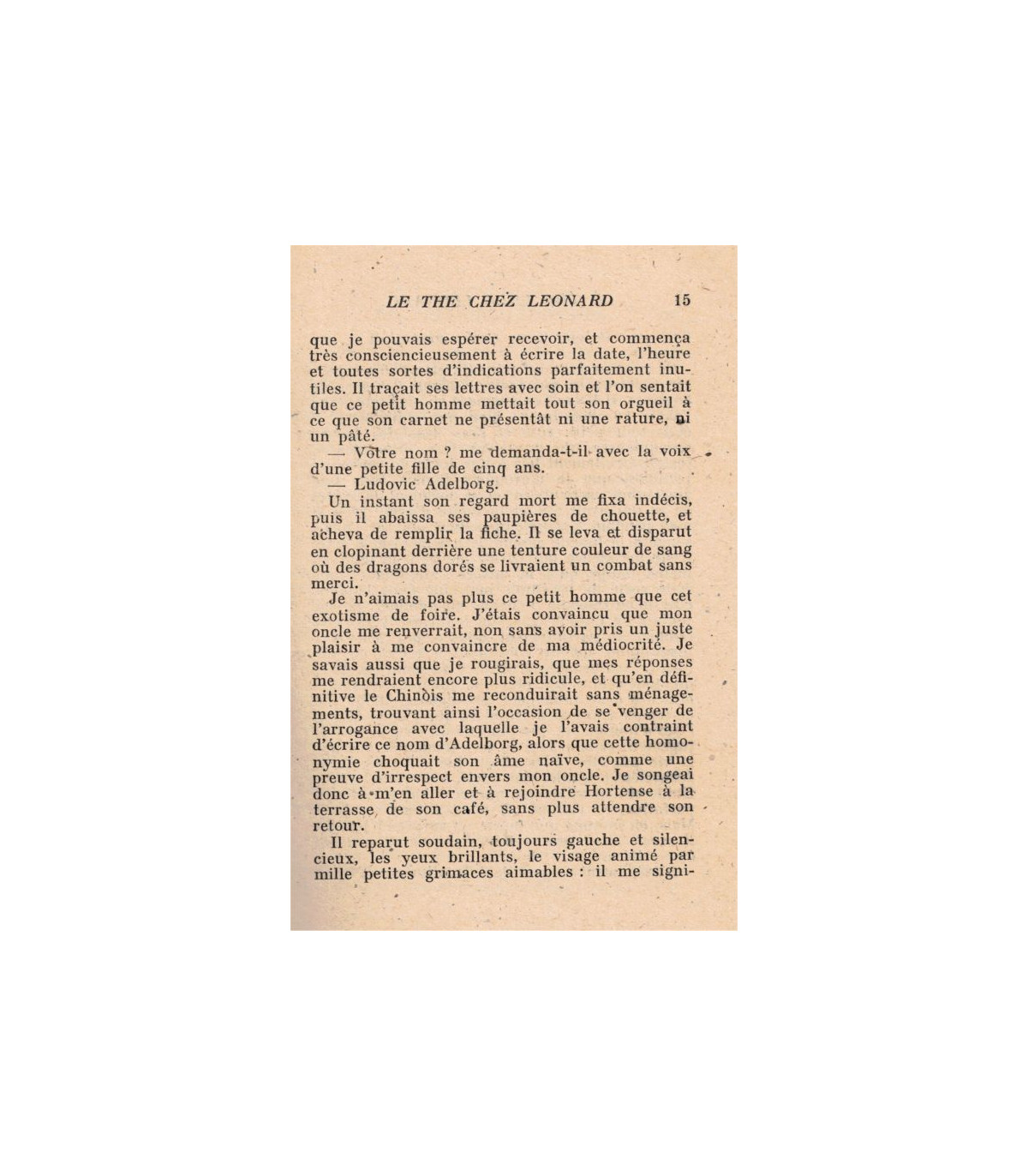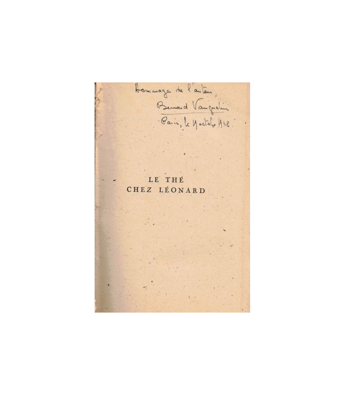 Le thé chez Léonard, Bernard Vauquelin - exemplaire dédicacé par Bernard Vauquelin "Hommage de l'auteur, Paris le 19 octobre 1948." Récit -