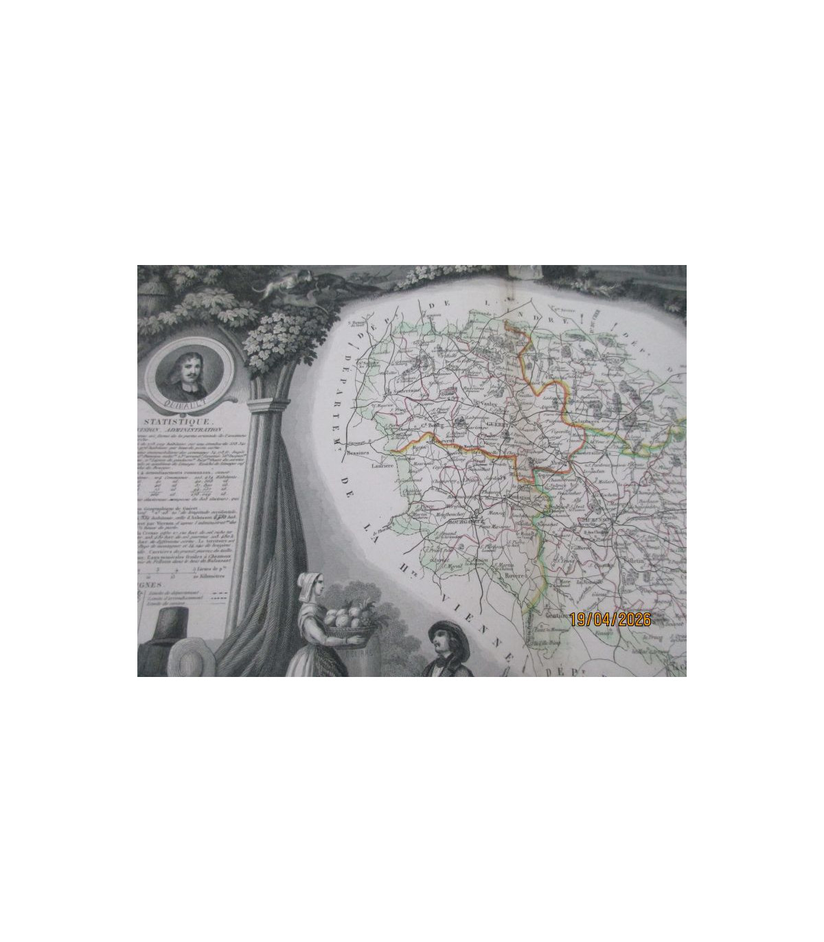 Gravure XIXe siècle, Département de la Creuse - Atlas National Illustré, Région de l'Ouest n°22 - Géographie et Statistique par Victor Levasseur, Ingénieur géographe, 24 rue de Malte - avec cachet estampé en relief - éditeur Combette.