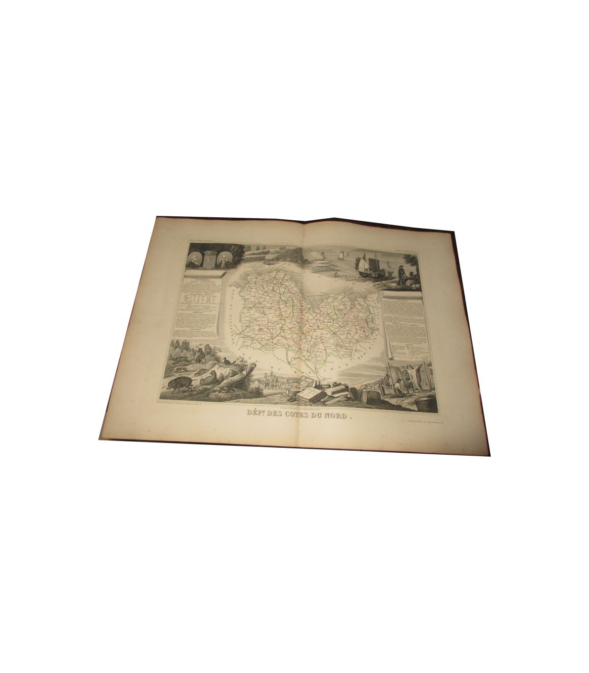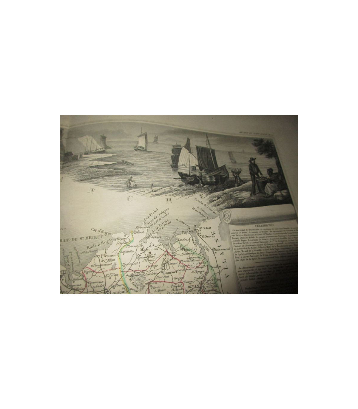 Gravure XIXe siècle, Département des Côtes du Nord - Atlas National Illustré, Région du Nord-Ouest N°21 - Statistique et Géographie par Victor Levasseur, Ingénieur géographe, rue de Malte, 24 - illustré par A.M. Perrot, Garde du Génie, et Raimond Bonheur, peintre. Rare ! car fait partie des premières éditions de l'Atlas de Levasseur, antérieures à Combette, par l'éditeur Binet 34 rue Aubry-le-Boucher, entre 1842 et 1844.