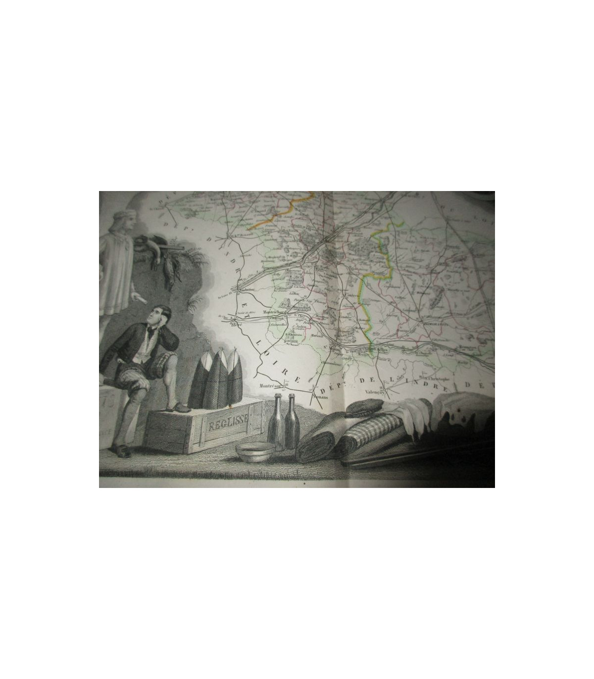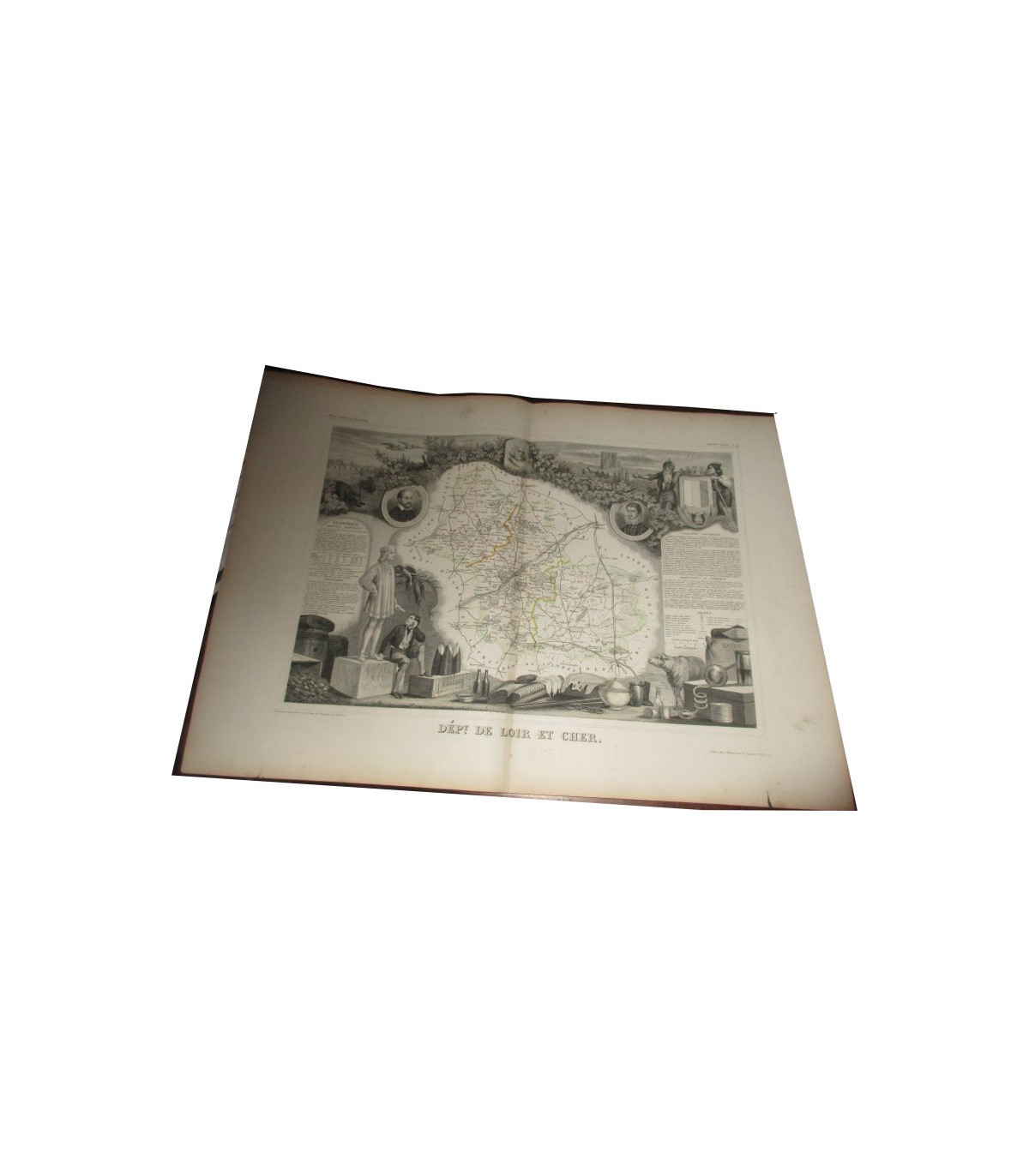 Gravure XIXe siècle: Département de Loir et Cher - Atlas National Illustré, Région Ouest n°40 - Statistique et Géographie par Victor Levasseur, Ingénieur géographe, rue de Malte, 24 - Avec cachet de l'éditeur estampé dans le papier sous le titre , éditeur Combette -