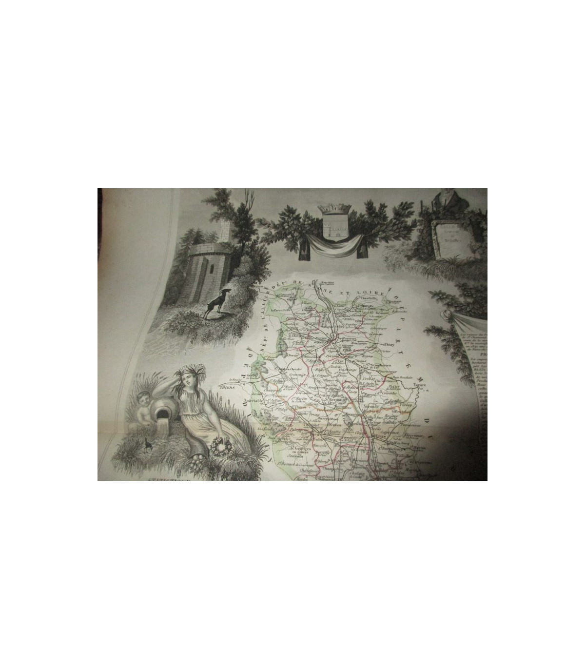 Gravure XIXe siècle: Département de la Loire - Atlas National Illustré, Région de l'Est N°41 - Géographie et Statistique par Victor Levasseur, Ingénieur Géographe rue du Faubourg du Temple, 46 - Illustré par A.M. Perrot officier du Génie, et Raimond Bonheur, peintre - gravé par Laguillermie et Rainaud, rue St. Jacques 82 - éditeur Combette.
