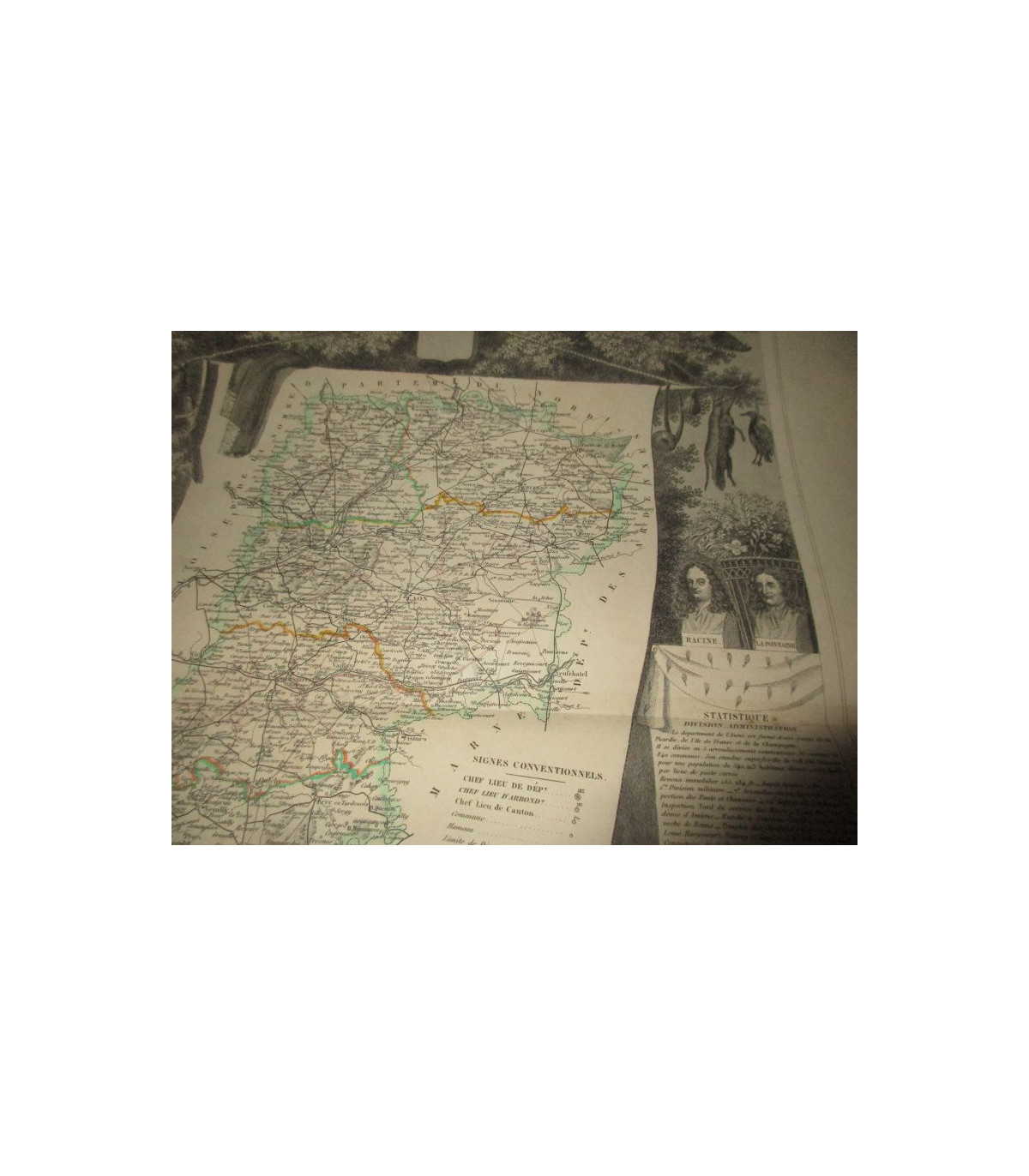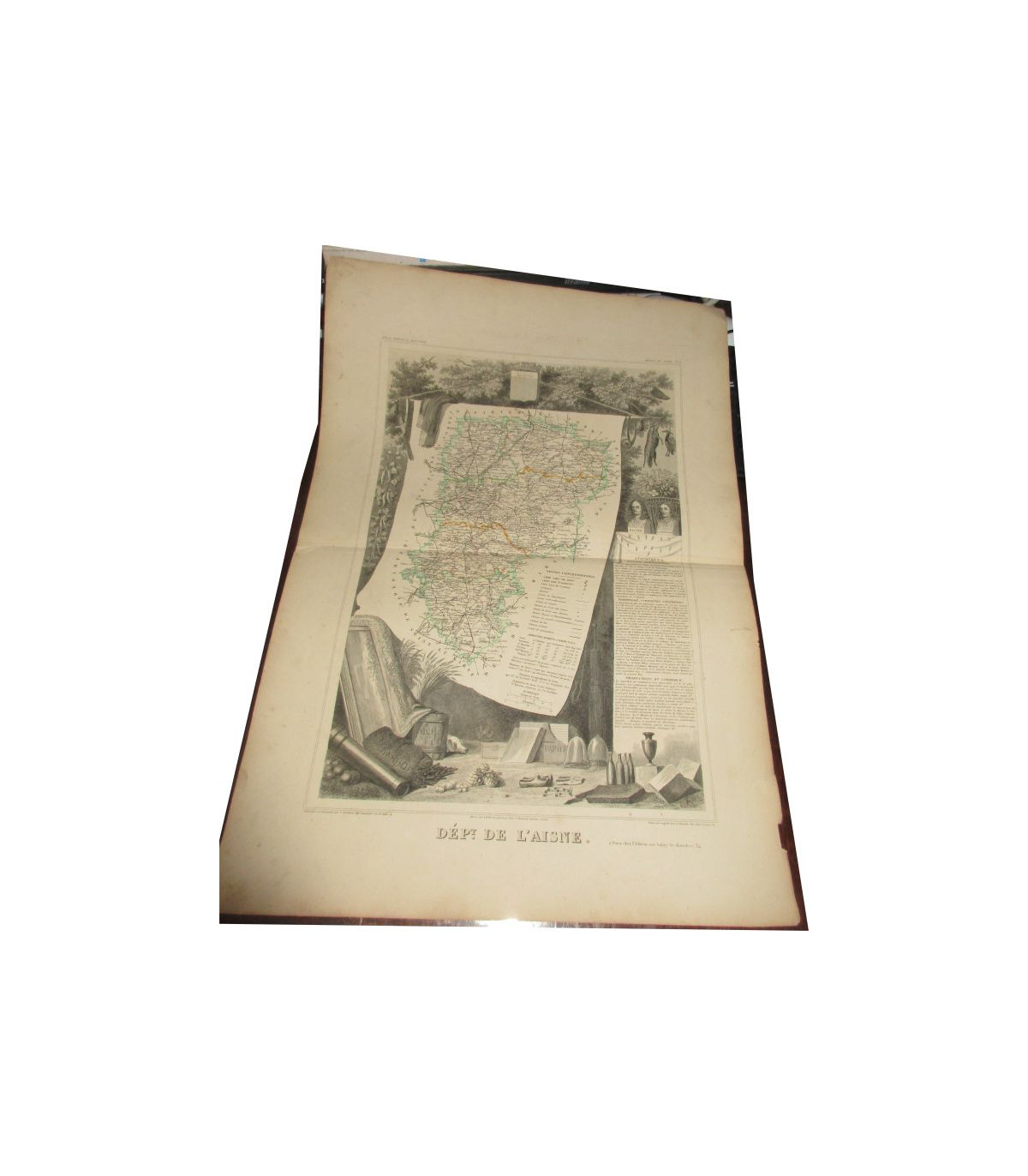 Gravure XIXe siècle, Département de l'Aisne - Atlas National Illustré, Région du Nord N°2 - Statistique et Géographie par Victor Levasseur, Ingénieur géographe, rue de Malte, n°24 - Illustré par A.M. Perrot attaché au Génie, et Raimond Bonheur peintre. Gravé par Laguillermie et Rainaud, rue St. Jacques 82. Rare ! car fait partie des premières éditions de l'Atlas de Levasseur, antérieures à Combette, par l'éditeur Binet 34 rue Aubry-le-Boucher, entre 1842 et 1844.