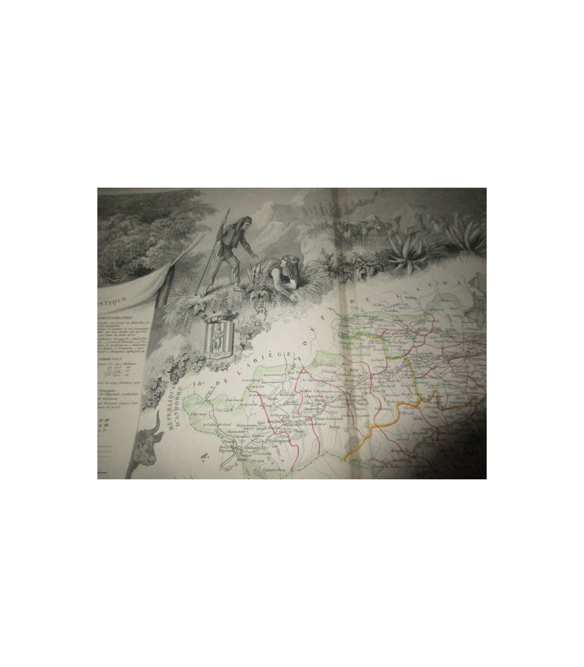 Gravure XIXe siècle, Département des Pyrénées Orientales - Atlas National Illustré, Région Sud n°65 - Statistique et Géographie par Victor Levasseur, Ingénieur géographe, rue de Malte, n°24 -Gravé par Laguillermie et Rainaud, rue St. Jacques 82. Rare ! car fait partie des premières éditions de l'Atlas de Levasseur, antérieures à Combette, par l'éditeur Binet 34 rue Aubry-le-Boucher, entre 1842 et 1844. Avec le monogramme AC estampé en relief dans le papier sous le titre.