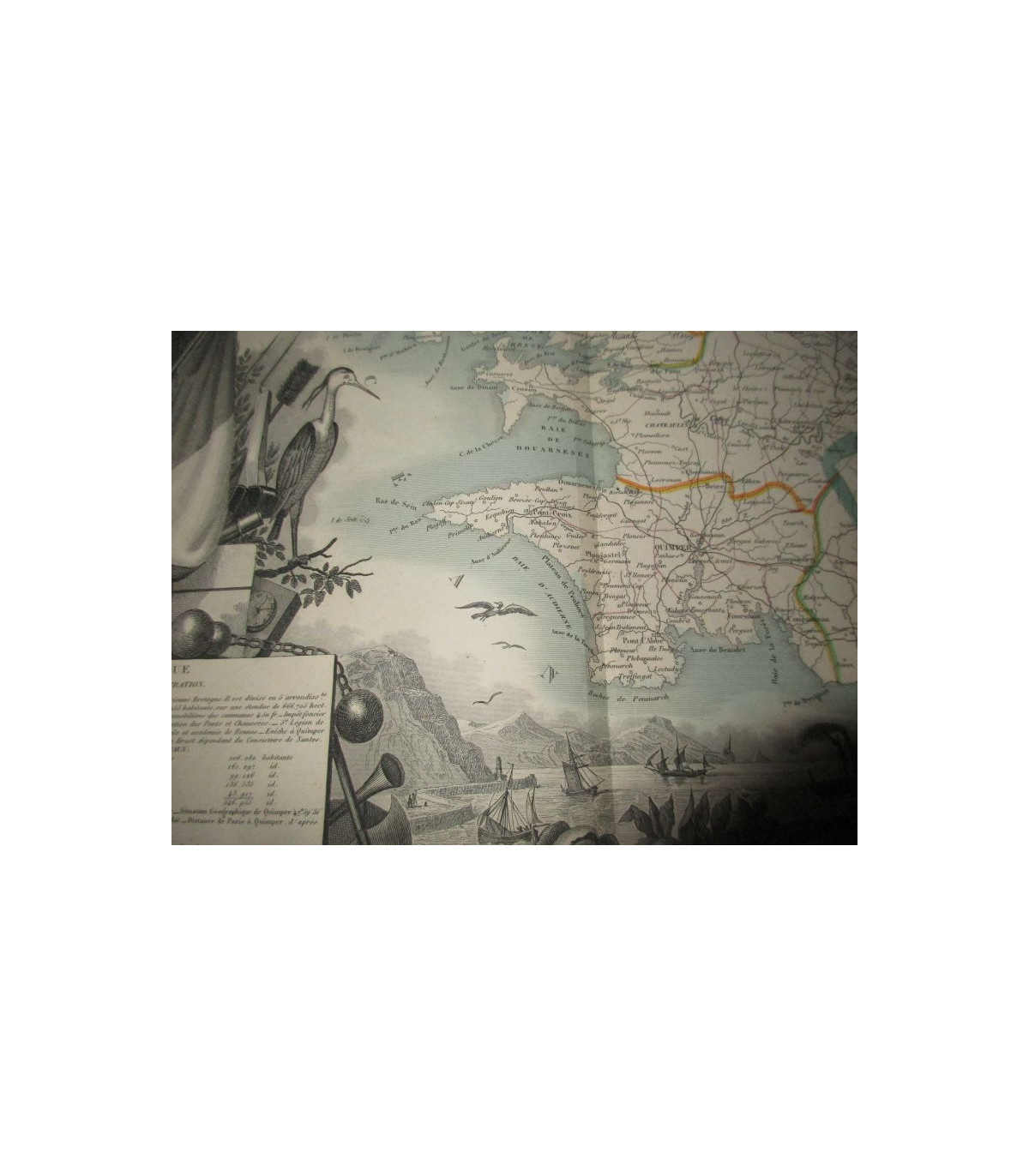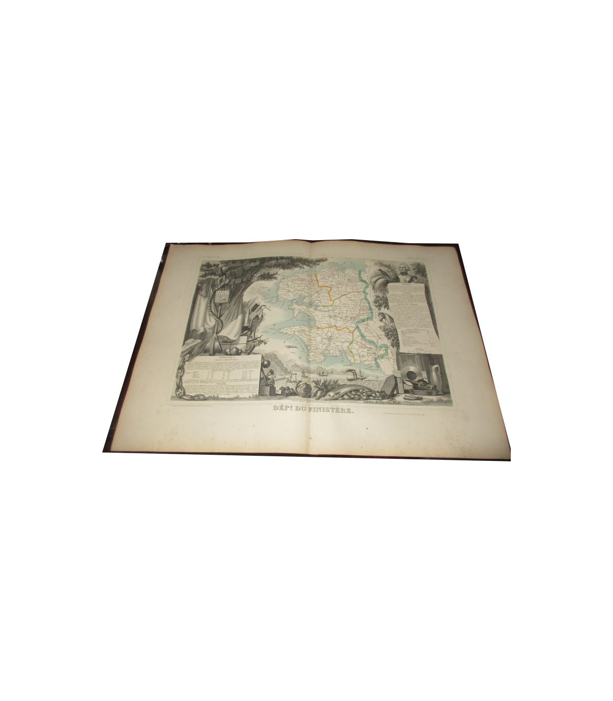 Gravure XIXe siècle, Département du Finistère - Atlas National Illustré, Région du Nord n°28 - Géographie et Statistique par Victor Levasseur, Ingénieur géographe, rue de Malte, n°24 - Illustré par A.M. Perrot, Garde du Génie et Raimond Bonheur, peintre. Rare ! car fait partie des premières éditions de l'Atlas de Levasseur, antérieures à Combette, par l'éditeur Binet 34 rue Aubry-le-Boucher, entre 1842 et 1844. Avec le monogramme estampé en relief dans le papier sous le titre.