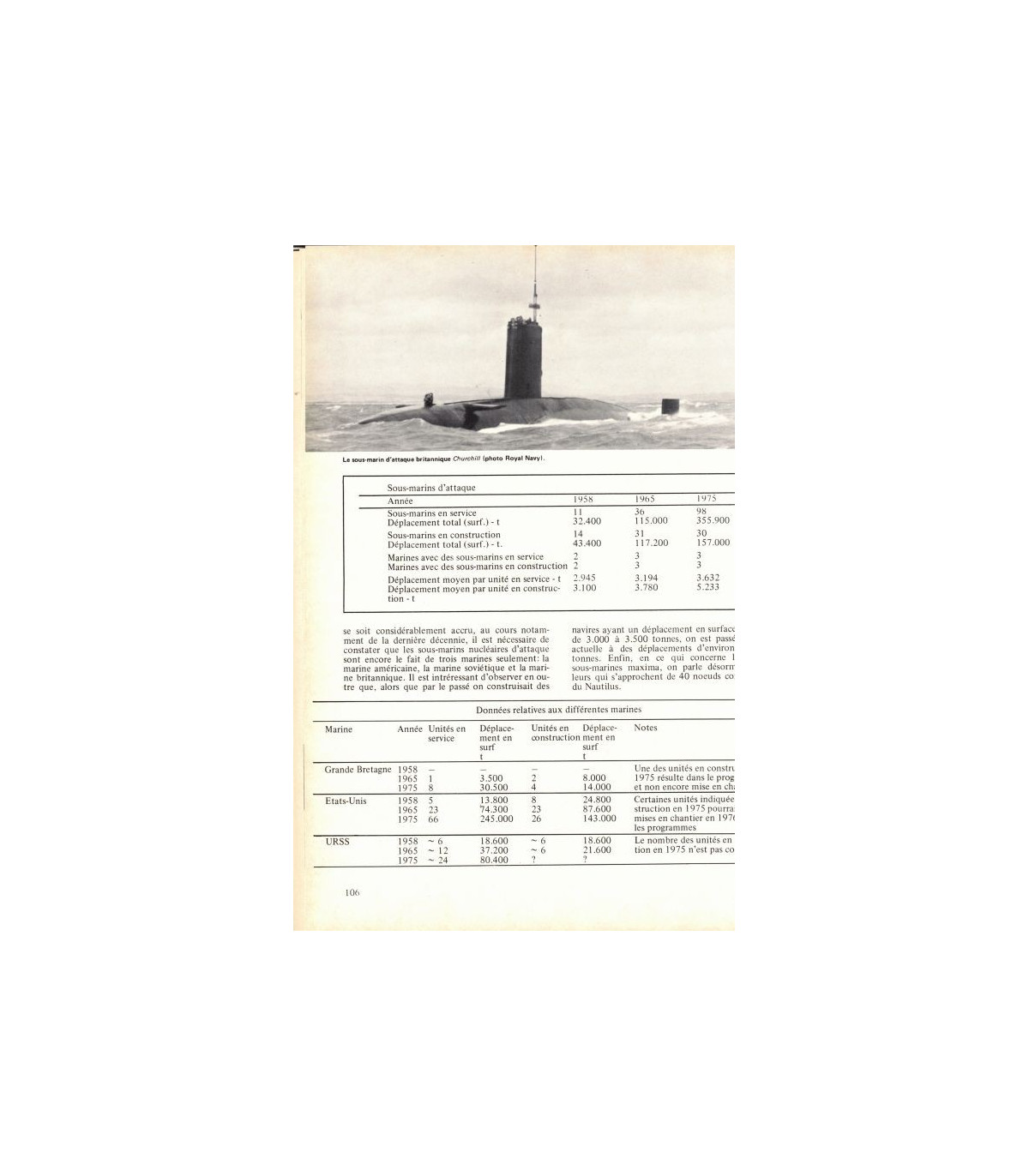 Les submersibles et les sous-marins : - les submersibles classiques - les modernisations et les nouvelles constructions - les sous-marins à propulsion nucléaire, lance-missiles et d'attaque -