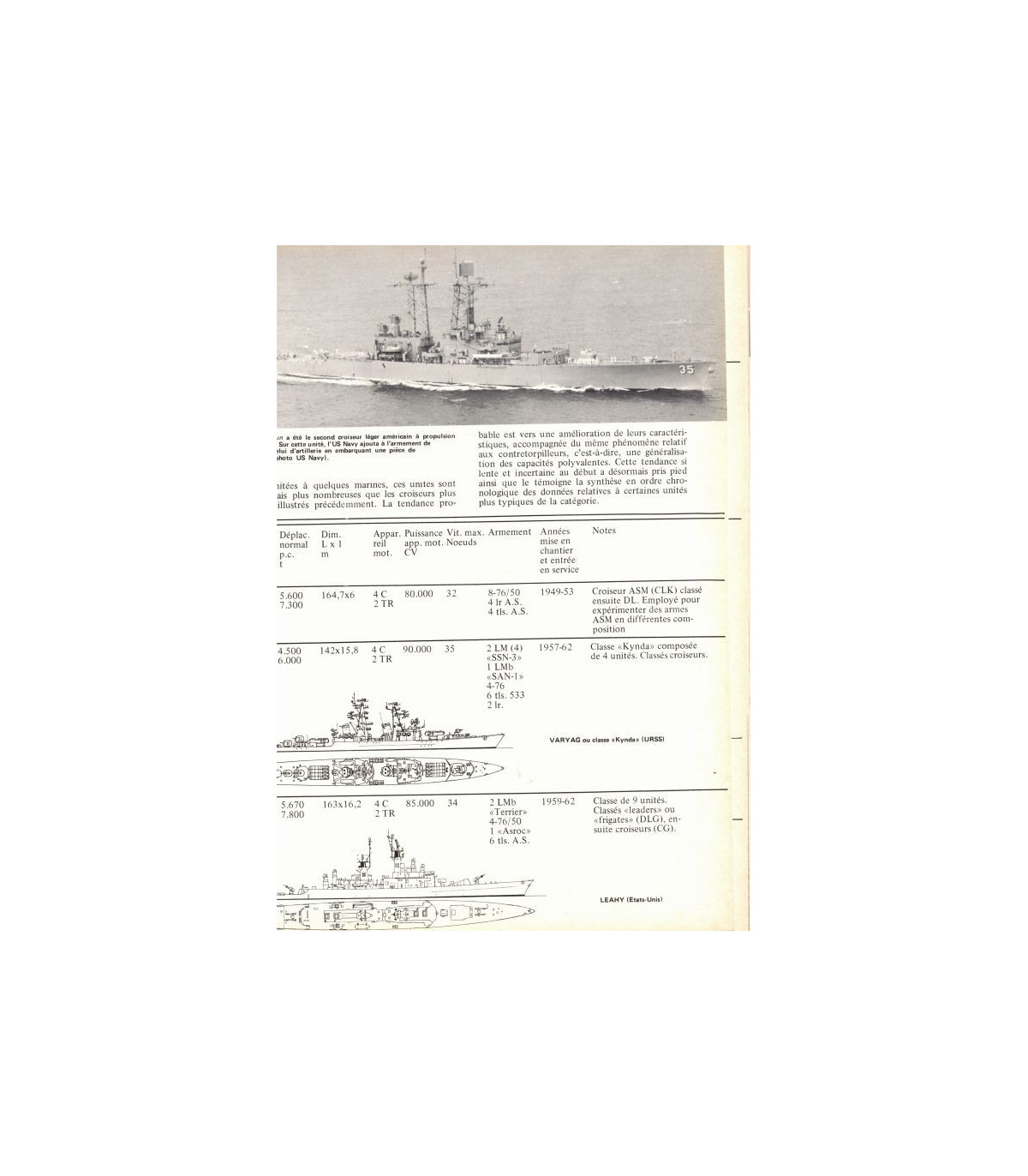 Les croiseurs et les navires éclaireurs : l'après-guerre, vieux et nouveaux croiseurs - les transformations en unités lance-missiles et le croiseur nucléaire Long Beach - les croiseurs porte-hélicoptères et la tendance vers les futurs croiseurs destinés au contrôle aéromaritime - leaders et croiseurs légers -
