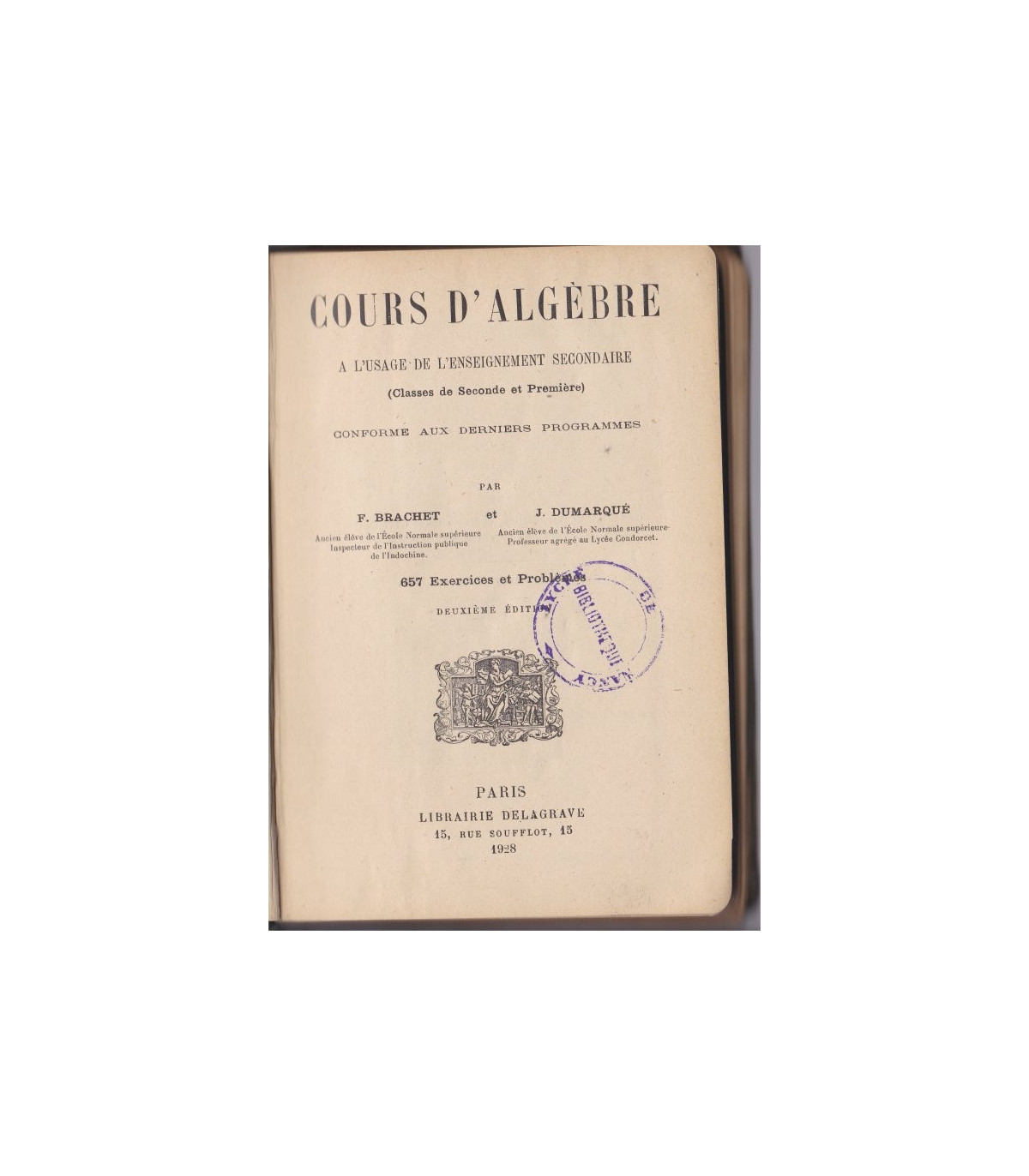 Cours d'algèbre, classes de seconde et première, par Brachet et Dumarqué - 657 exercices et problèmes - conformes aux derniers programmes,