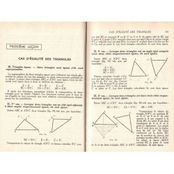 Arithmétique, algèbre et géométrie, classe de quatrième, par Lebossé et Hémery - programme du 31 juillet 1958 - Arithmétique et algèbre : puissances - nombres premiers - plus grand commun diviseur, plus petit commun multiple - applications aux fractions - nombres algébriques ou relatifs - addition des nombres relatifs - soustraction des nombres relatifs - produit des nombres relatifs - division des nombres relatifs - relation de Chasles - puissances - inégalités - expressions algébriques - monômes - polynômes - multiplication des polynômes - identités remarquables - division des monômes et des polynômes - décomposition en facteurs - fractions rationnelles - équation du premier degré - équations se ramenant au premier degré - systèmes d'équations - problèmes d'algèbre - exercices de révision - Géométrie : rappel de définitions - triangle isocèle - cas d'égalité des triangles - inégalités dans le triangle - Perpendiculaire et obliques - droite parallèles - propriétés angulaires des parallèles - somme des angles d'un triangle - parallélogramme - rectangle - losange - carré - trapèze - parallèles équidistantes - droites concourantes dans un triangle - le cercle - droite et cercle - positions relatives de deux cercles - cordes d'un cercle - angle inscrit - quadrilatère inscriptible - constructions géométriques - constructions de triangles - tangentes et cercles tangents - polygones réguliers - problèmes de révision - Travaux pratiques et astronomie : travaux pratiques - coordonnées équatoriales - le système solaire - éclipses - édition Librairie Fernand Nathan, 1958. #manuels mathématiques, #ancien manuel maths, #maths 4e, #enseignement maths en 1950, #maths classe de 4e, #algèbre 4e, #algèbre classe de quatrième, #programme mathématiques 1950, #géométrie 4e, #géométrie classe de quatrième, #anciens manuels,
