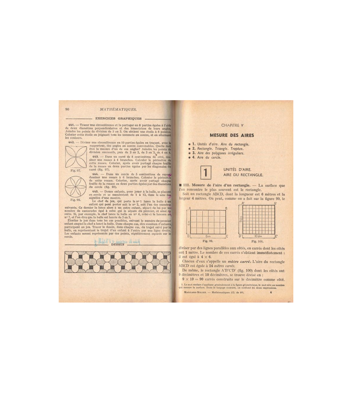 Mathématiques et dessin géométrique, Classe de sixième, par Roland Maillard et Albert Millet - programme du 24 juillet 1947 - Cours complémentaires - 873 exercices et problèmes -
