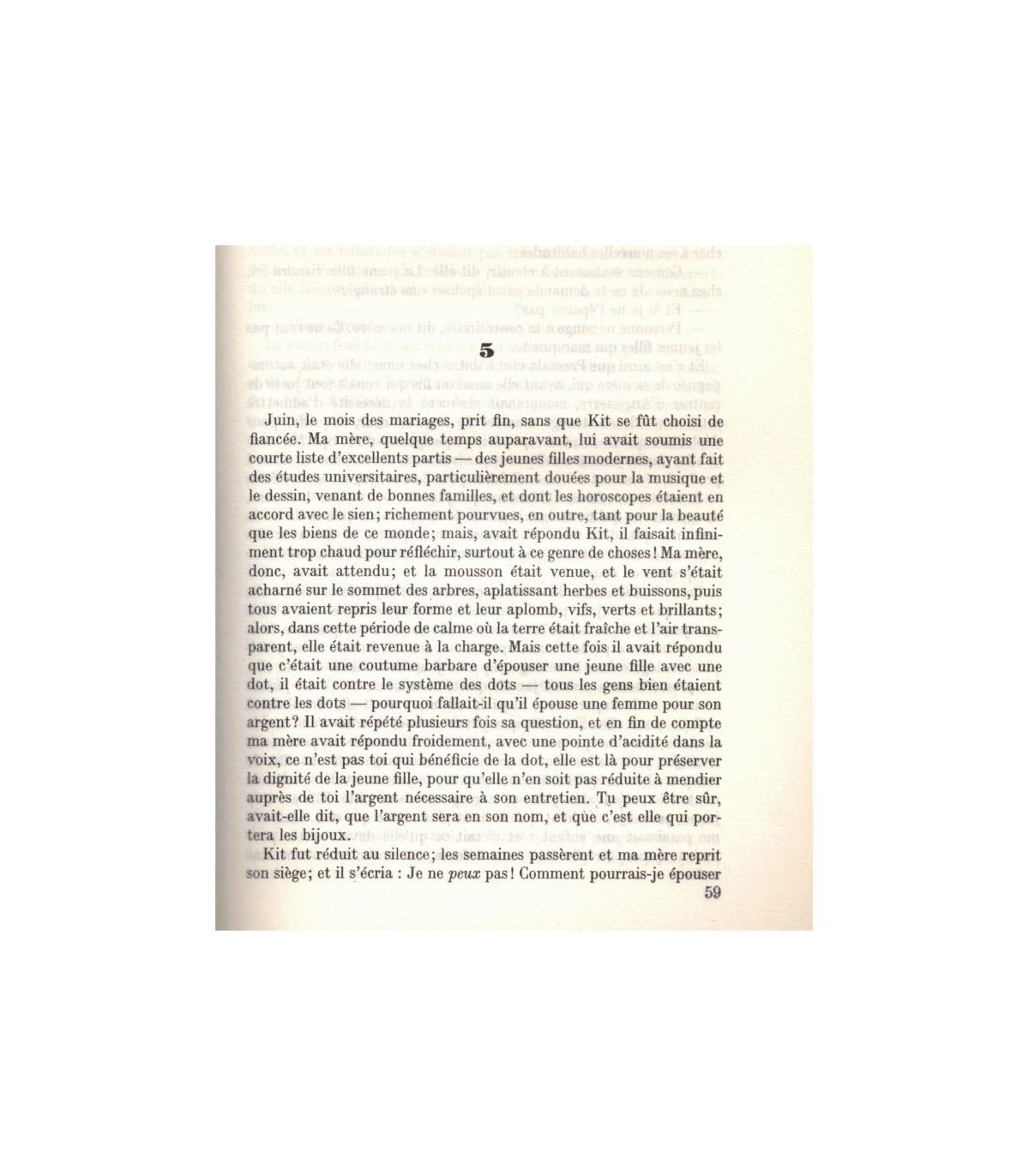 "Dans la lutte pour l'indépendance de l'Inde, le refus de la violence était de règle. Ce livre illustre l'exception." "Il y avait si longtemps que je n'étais pas revenue à la maison que j'avais presque oublié la petite boîte d'argent, au fond du placard que j'étais seule à ouvrir. Un joli travail de filigrane, avec des fleurs de lotus au relief si usé que, pour retrouver le dessin, il me fallait le chercher du bout des doigts. J'ouvris la boîte; il y avait dedans le lambeau d'étoffe que j'avais vu arracher de sa manche, en haut du bras, là où la chair était blanche comme du lait, et que j'avais ramassé dans la poussière quand tout avait été fini. La poussière était toujours là, elle aussi - il n'y avait d'ailleurs aucune raison pour qu'elle n'y fût pas; mais ce n'était plus une poussière rouge et brûlante, tourbillonnant follement comme ce jour-là, l'obscurité l'avait pâlie et la poussière était fine et grisâtre. Je restai, debout à côté de la boîte à trembler de peur; j'attendais la douleur et elle vint. Lentement,, elle monta en moi, m'emplit la gorge d'angoisse, de ma gorge gagna mes tempes et vint battre derrière mes yeux. Je refermai douclement la boite et la remis au fond du placard, j'attendis le reflux de la douleur, un peu effrayée de découvrir que je souffrais si facilement, que le temps 'n'avait pas réussi à étancher ce îlot."