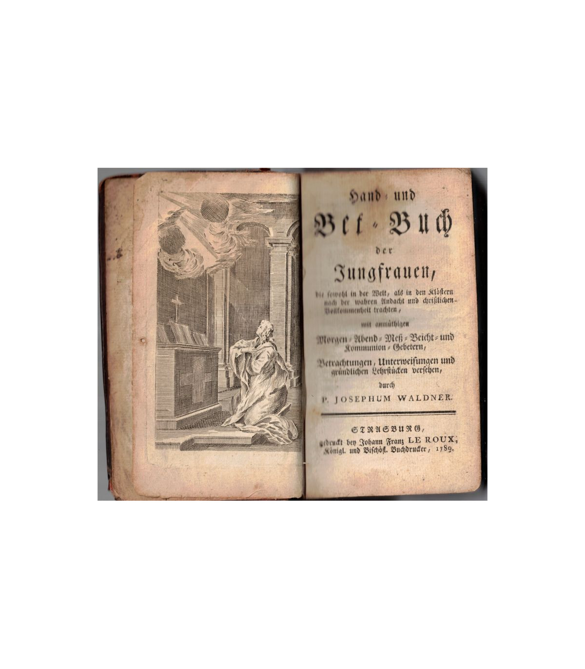 Hand- und Bett-Buch Der Jungfrauen, Die sowohl in der Welt, die sowohl in der Welt, als in den Clöstern nach der wahren Andacht und Christlichen Vollkommenheit trachten. Durch R.P. Josephum Waldner