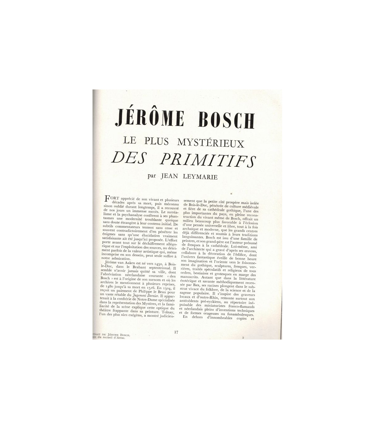 Le trésor de la cathédrale de Sens, Marguerite David-Roy - Jérôme Bosch, le plus mystérieux des primitifs, Jean Leymarie - Rencontre avec Vlaminck, Jean-Albert Cartier - la vénerie dans l'art français, Roger Vaultier - Les cabinets d'amateurs flamands au XVIIe siècle, Speth-Holterhoff - le style 1925, Brunhammer - affiches de guerre 1914-1918 -