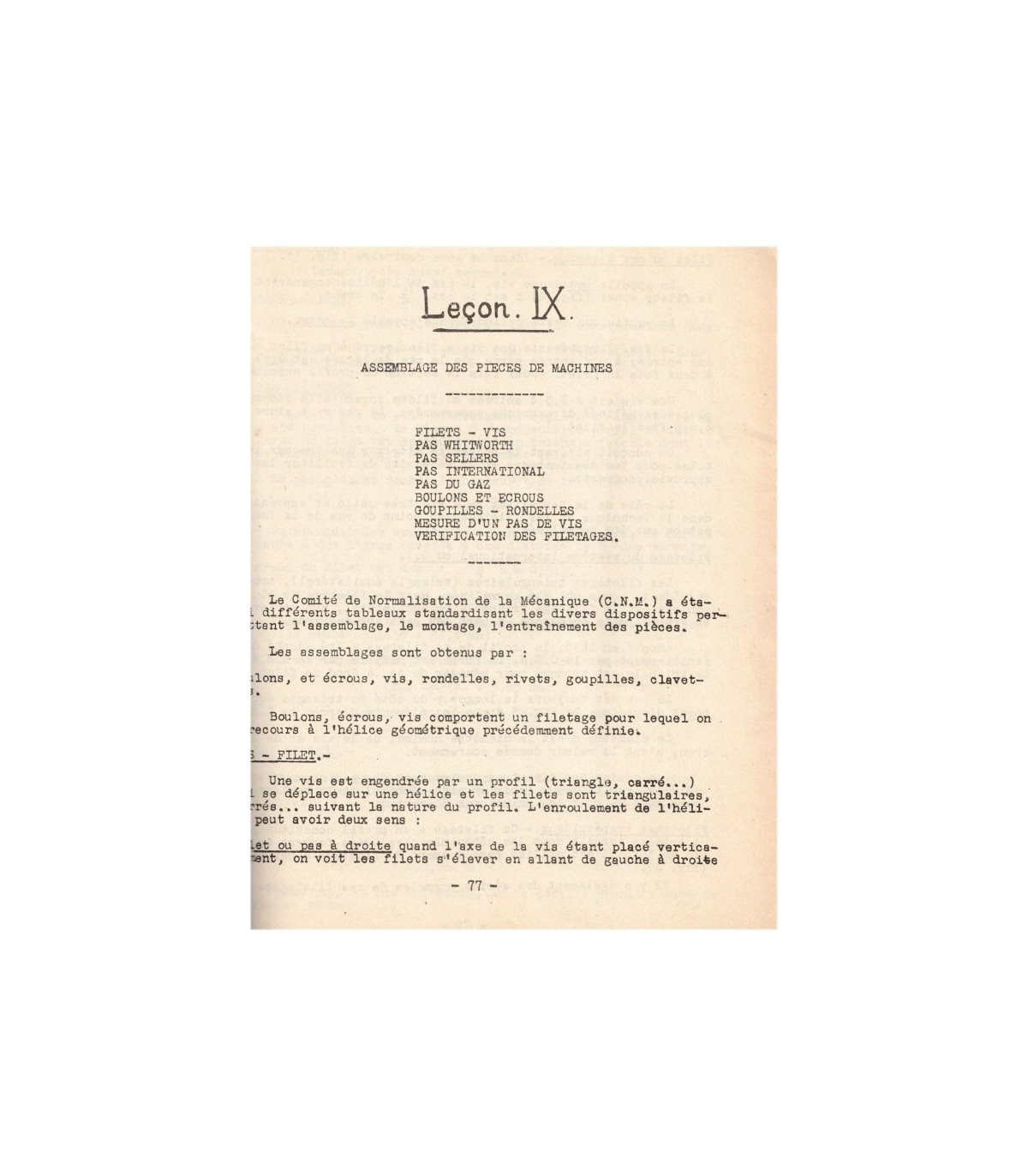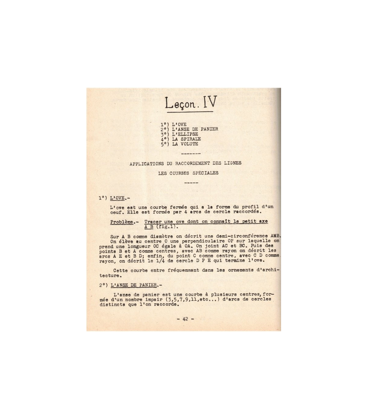 Cours de dessin industriel, Institut moderne polytechnique - Cours dactylographié et polycopié : Outillage du dessinateur, examen des divers instruments, croquis cotés, échelles, tracés - Perpendiculaires et parallèles, division des lignes droites, la circonférence, division de la circonférence - Mesure et division des angles, surfaces, triangles,tracé des polygones réguliers, cercle, couronne, secteur, lignes proportionnelles, raccordement des droites et des arcs, exercices types - l'OVE, l'anse de panier, l'ellipse, la spirale, la volute - La parabole, l'hyperbole, la cycloïde, l'épicycloïde, développement du cercle - manchons d'accouplement, embrayages, transmissions par courroies, poulies, transmissions par chaines, etc... - Centre International d'études par correspondance (sans date). #école polytechnique, #dessin industriel,
