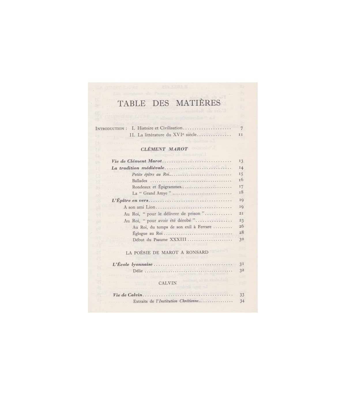 XVIe siècle, les grands auteurs français du programme, tome 2, par André Lagarde et Laurent Michard - Clément Marot : vie de Clément Marot ; la tradition médiévale ; l'Epître en vers.- La poésie de Marot à Ronsard : l'Ecole lyonnaise. Calvin : vie de Calvin. Rabelais : Gargantua ; Pantagruel ; Le Tiers livre ; le Quart livre ; le Cinquième livre. La Pléïade : le collège de Coqueret ; la "défense et Illustration". Du Bellay : l'Olive ; les Antiquités de Rome ; les Jeux rustiques ; les Regrets ; le poète courtisan. Ronsard : le poète des odes ; le poète des amours ; les hymnes ; la Franciade ; les derniers vers. Le théâtre : les débuts de la tragédie ; la comédie. La littérature engagée. D'Aubigné, Monluc, la satire ménippée. Montaigne : le dessein de Montaigne ; de l'institution des enfants ; l'art de Montaigne ; Montaigne et la philosophie ; la sagesse de Montaigne. Collection Textes et Littérature. éditions Bordas, 1963. #Lagarde et Michard, #Rabelais, #Ronsard, #Montaigne, #Du Bellay, #théâtre XVIe siècle, #poésie XVIe siècle, #littérature XVIe siècle, #manuels de français, #manuel de littérature, #littérature française, #XVIe siècle, #écrivains du 16e siècle.